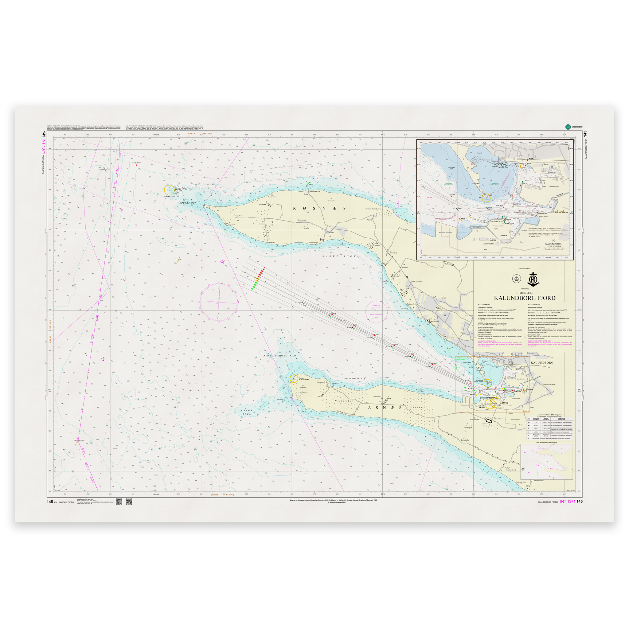 Denmark Chart 145 – Storebælt, Kalundborg Fjord (INT 1371) is an official Danish nautical chart published by Geodatastyrelsen at a scale of 1:25 000.