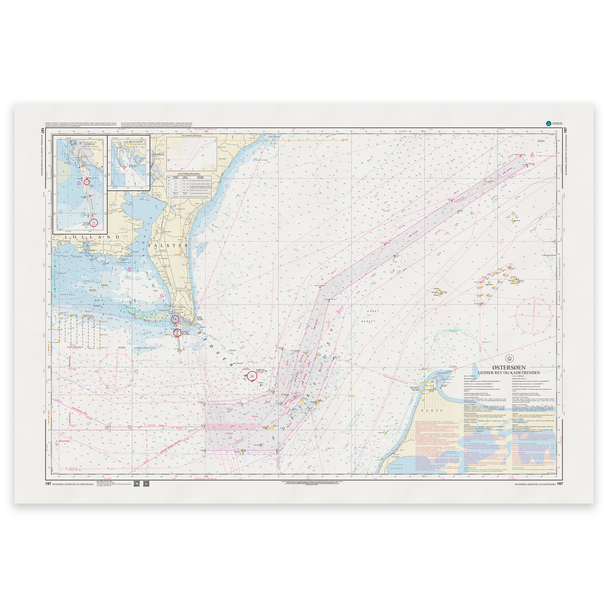 Denmark Chart 197 – Baltic Sea, Gedser Rev and Kadetrenden is an official Danish nautical chart published by Geodatastyrelsen at a scale of 1:75 000.