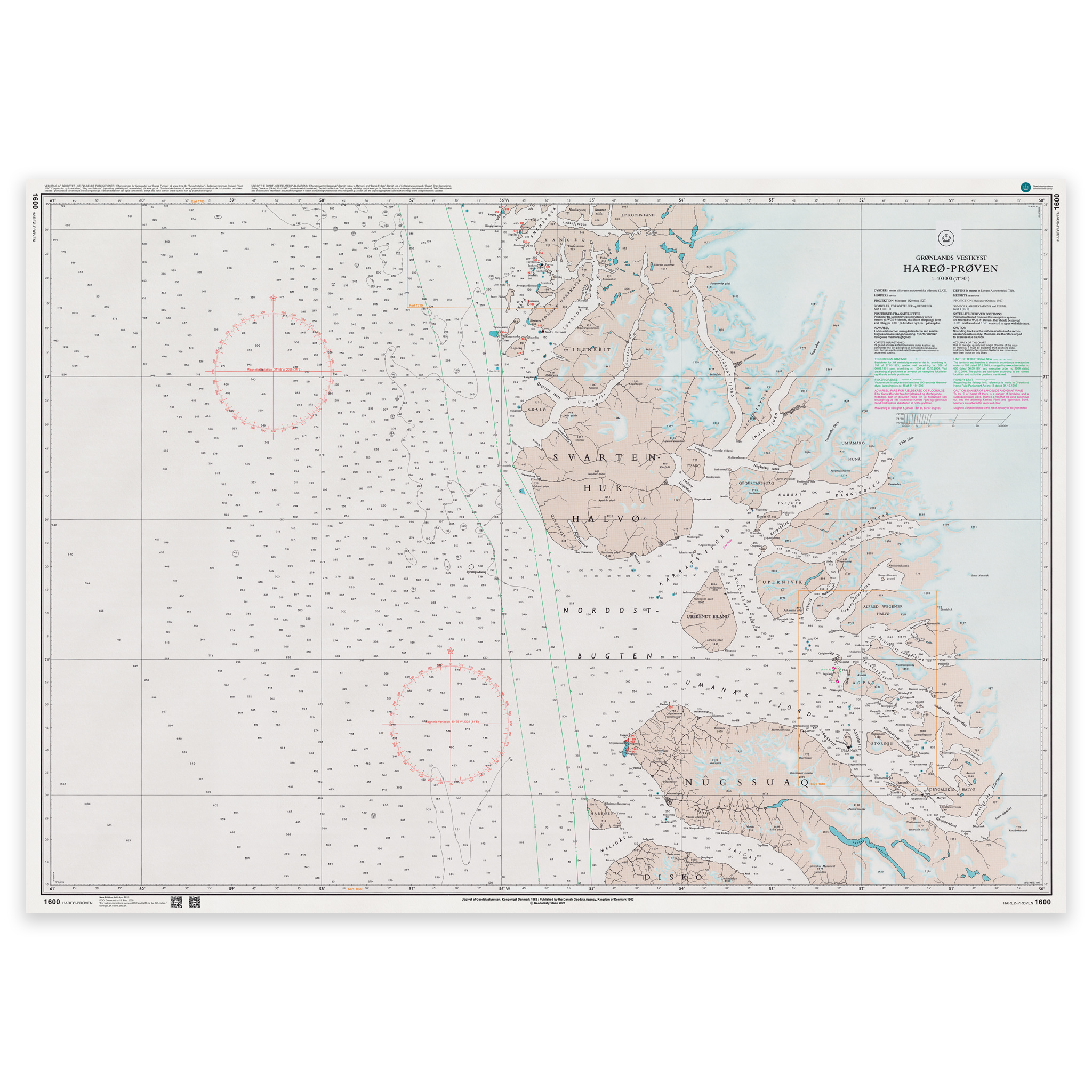 Official nautical chart of Greenland with map number 1600 in scale 1:400 000.