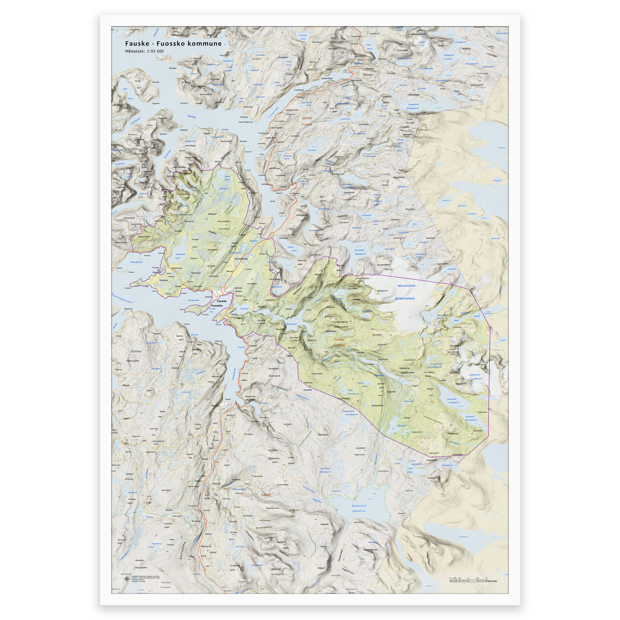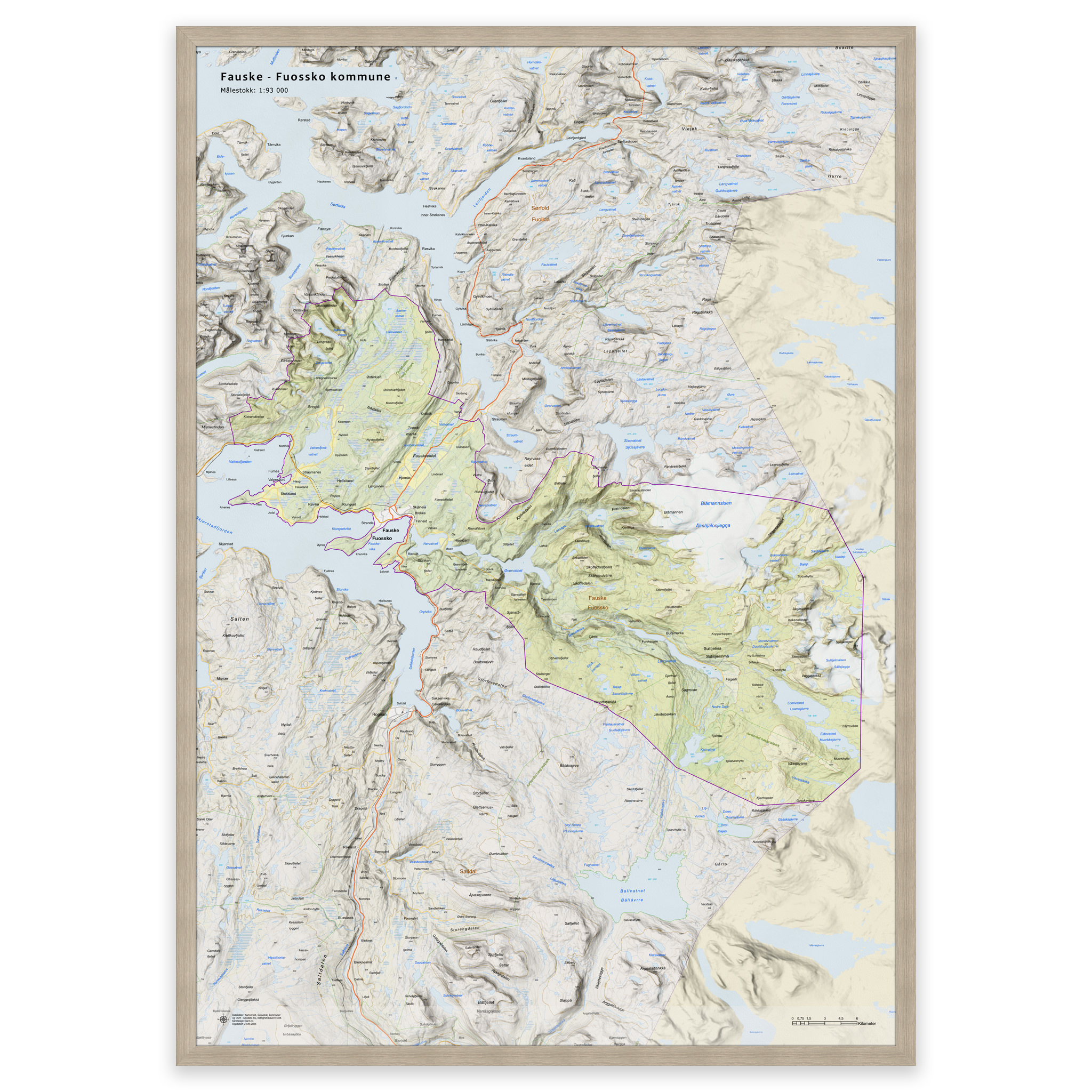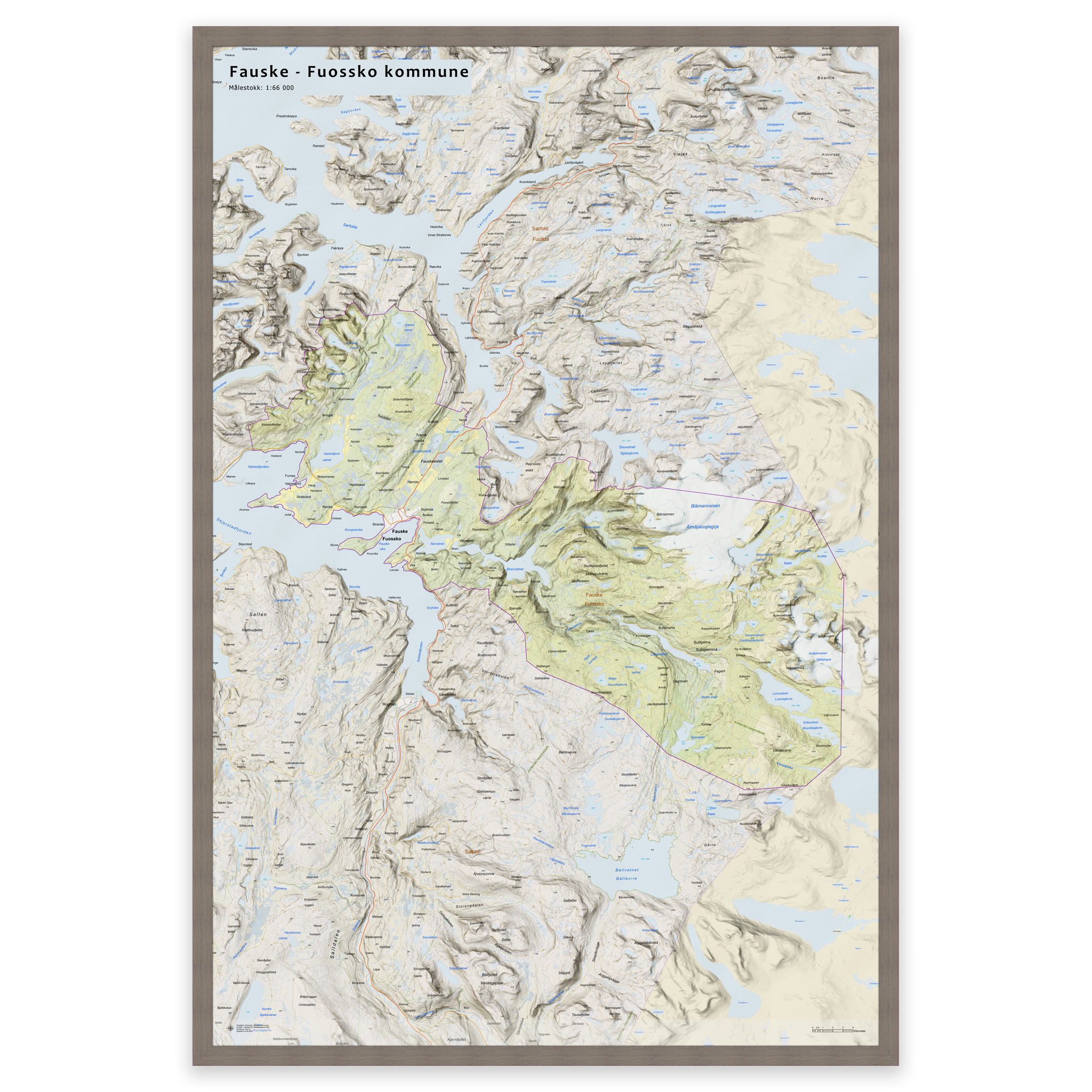 Wall map – Fauske municipalityWall map – Fauske municipality