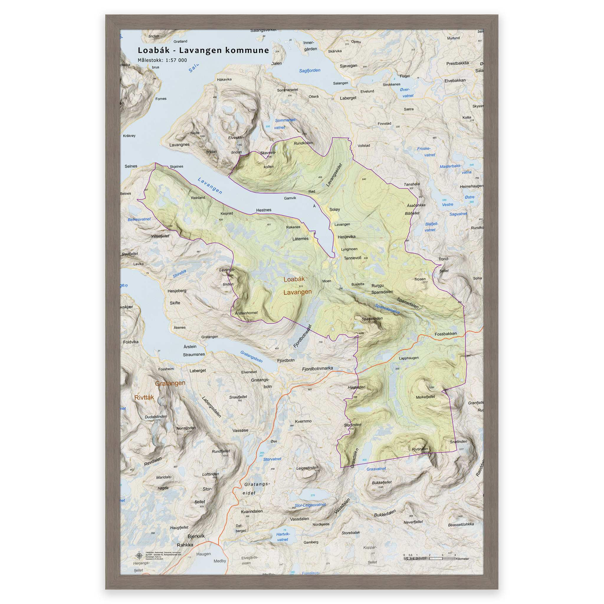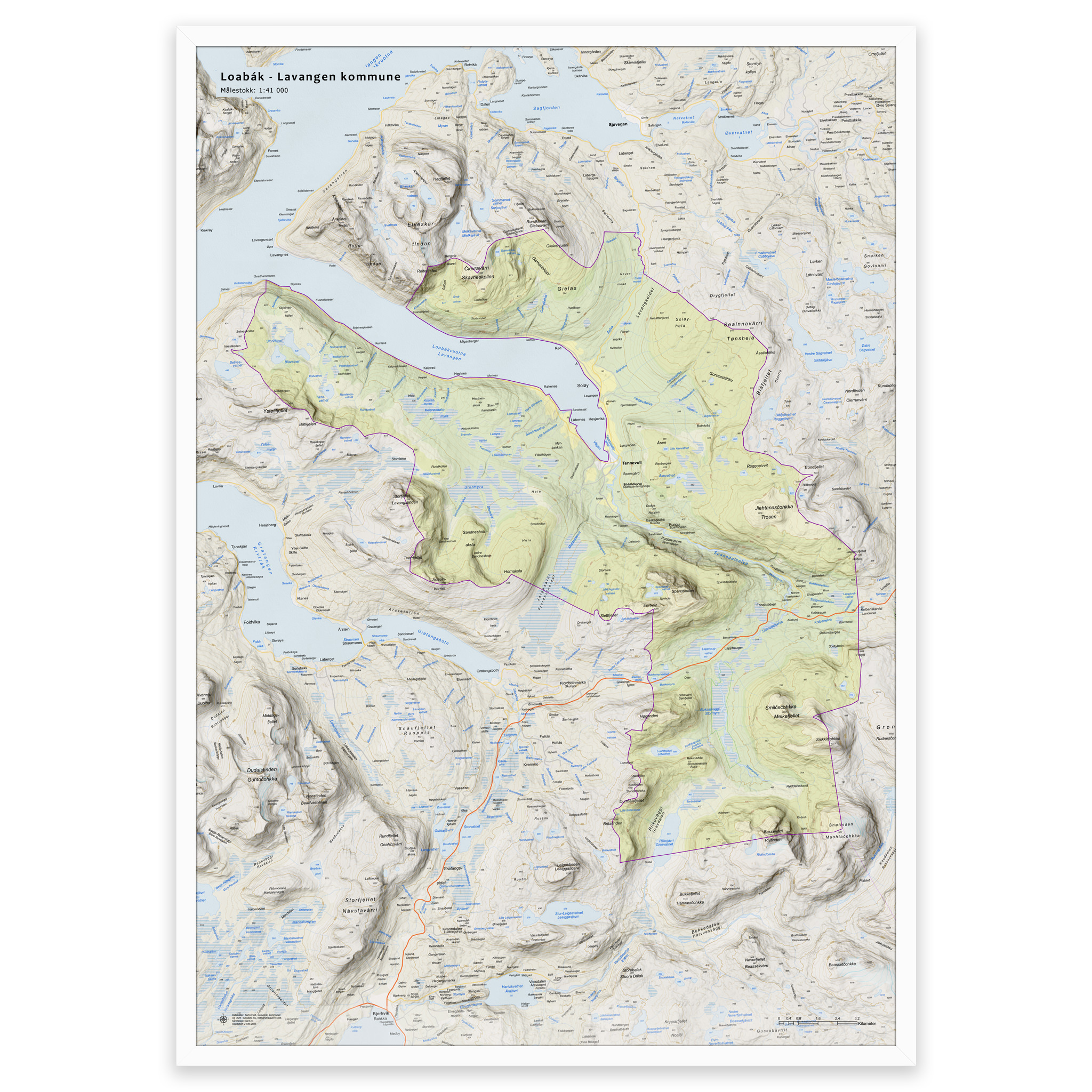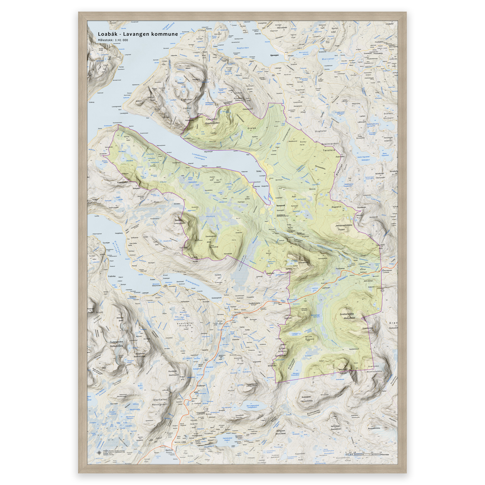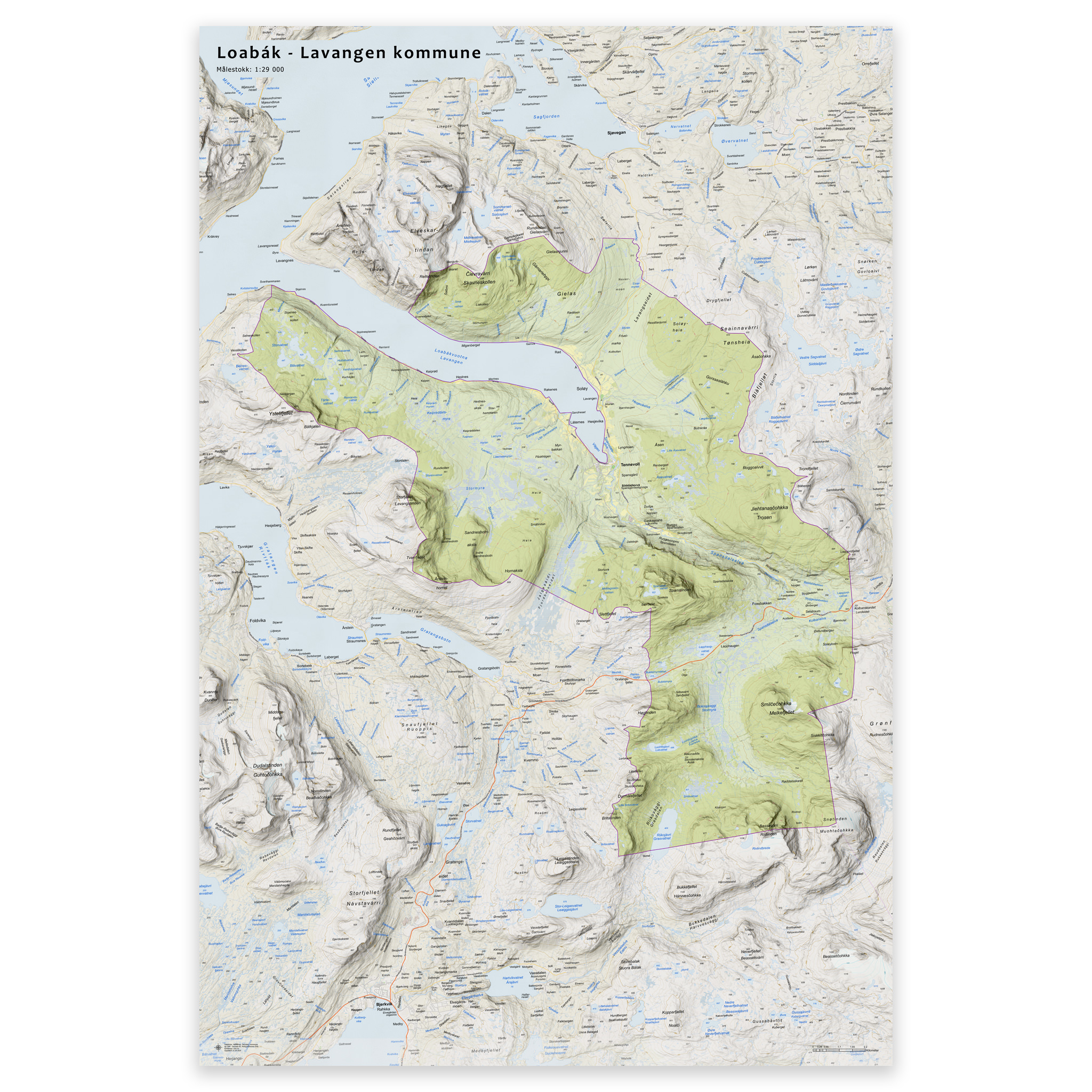 Wall map – Lavangen municipalityWall map – Lavangen municipality