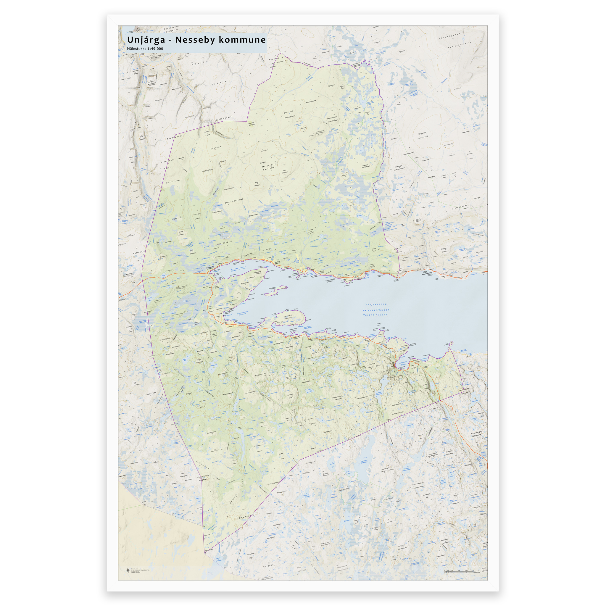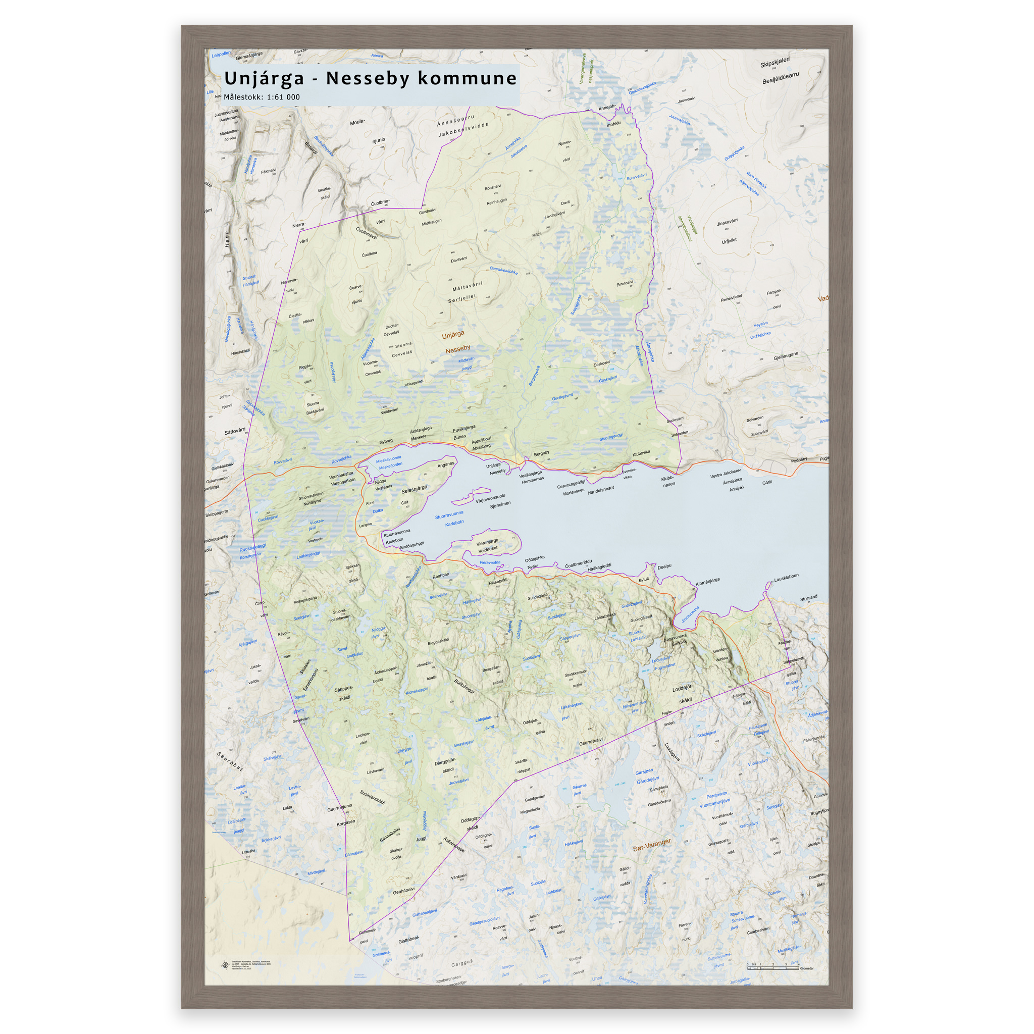 Wall map – Nesseby municipalityWall map – Nesseby municipality