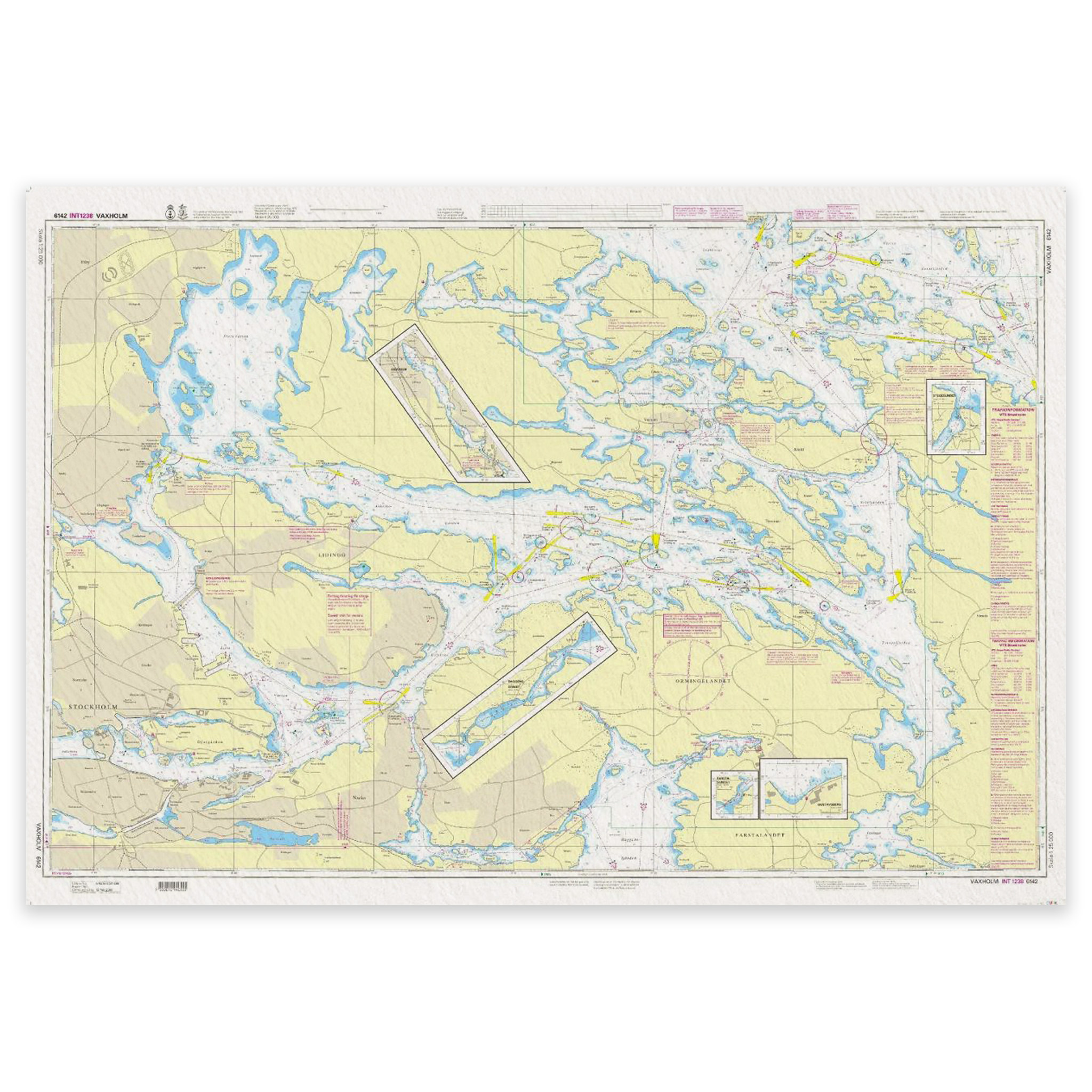 Dette kartet dekker området Vaxholm. Det er et offisielt sjøkart utgitt av svenske kartverket (Sjöfartsverket). Kartet er beregnet for sikker navigasjon og planlegging på sjøen.