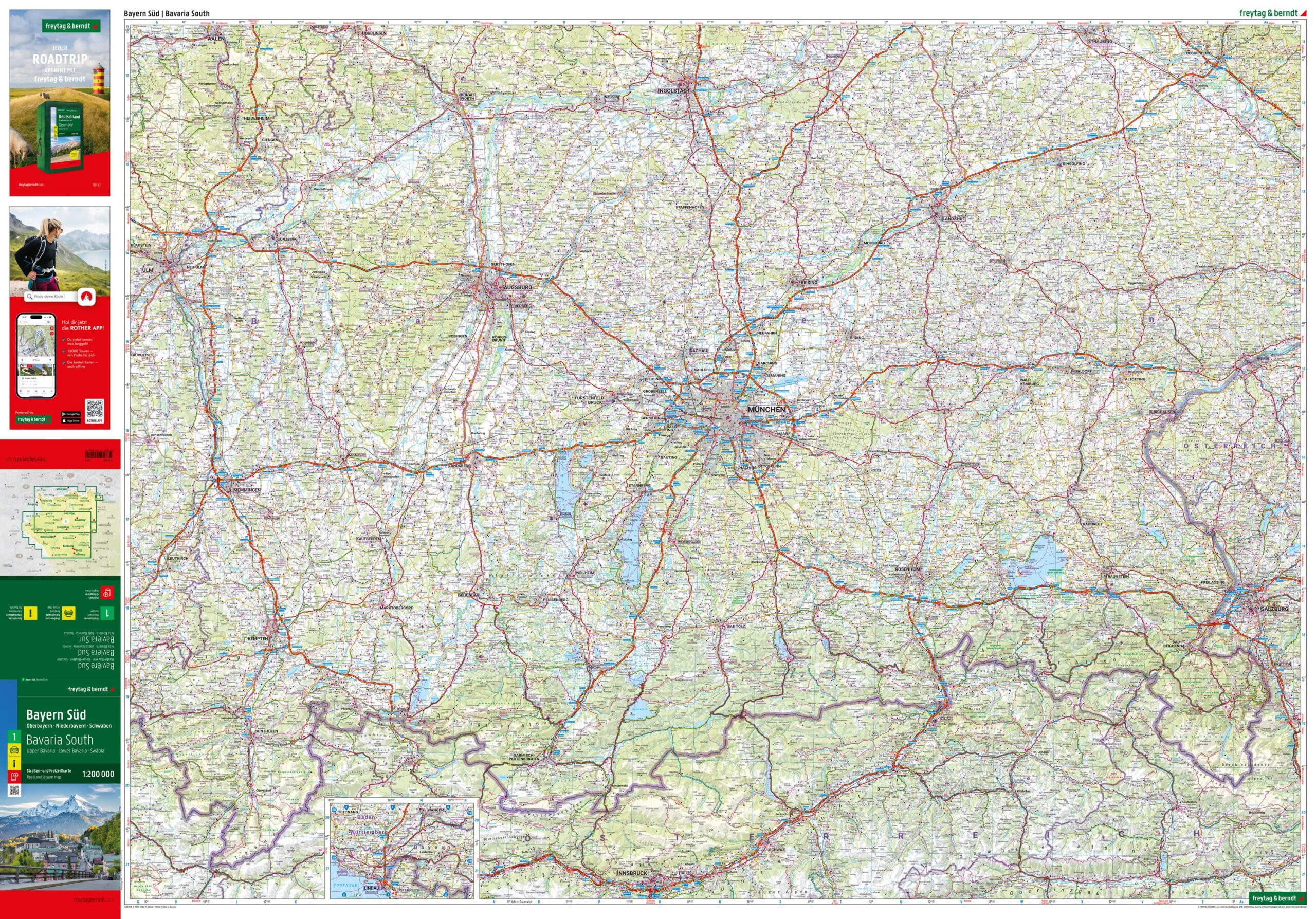 Dette veikartet over Sør-Bayern gir en detaljert og oversiktlig fremstilling av regionene Oberbayern, Niederbayern og Schwaben, tilpasset reiser med bil, motorsykkel og bobil. Kartet viser et tett og presist vegnett med tydelig markerte hoved- og sideveier, avstander og et bredt utvalg turistmål og utfluktssteder. Kartografien er lettlest og strukturert, noe som gjør kartet godt egnet både til ruteplanlegging hjemme og til orientering underveis på reisen. I tillegg inneholder kartet praktisk informasjon som campingplasser og stellplasser, samt et digitalt stedsregister med postnumre som gir rask tilgang til søk etter steder via mobil. Kartet inngår i kartserien Tyskland 1:200 000 og dekker Sør-Bayern som eget blad. Utgivelsesår: 2025.