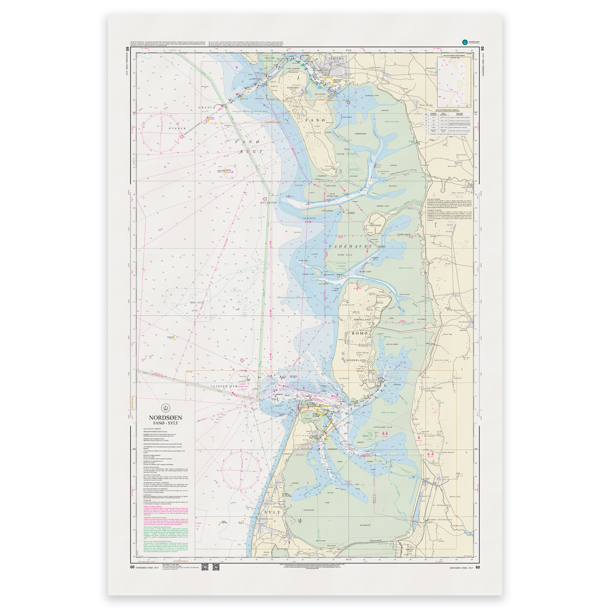 Denmark Chart 60 – Nordsøen, Fanø – Sylt er et offisielt dansk sjøkart utgitt av Geodatastyrelsen i målestokk 1:75 000.