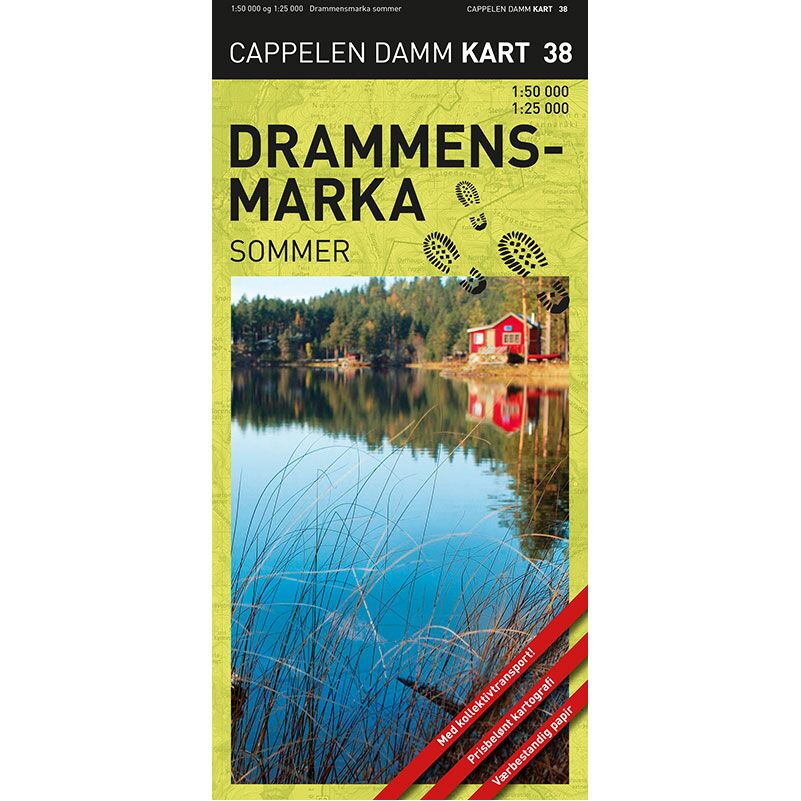 Turkart over Drammensmarka, med skogene nord og sør for byen samlet på samme kart. Kartet dekker hele Finnemarka mellom Vikersund, Hokksund, Drammen og Lierdalen. Og hele marka fra Vestfossen, Mjøndalen og Konnerud i nord til Sande i sør. Sommerutgaven viser blant annet merkede stier, badeplasser, servering, overnatting og kollektivtrafikk. Kartet har fjellskygge og er trykket på værbestandig papir.