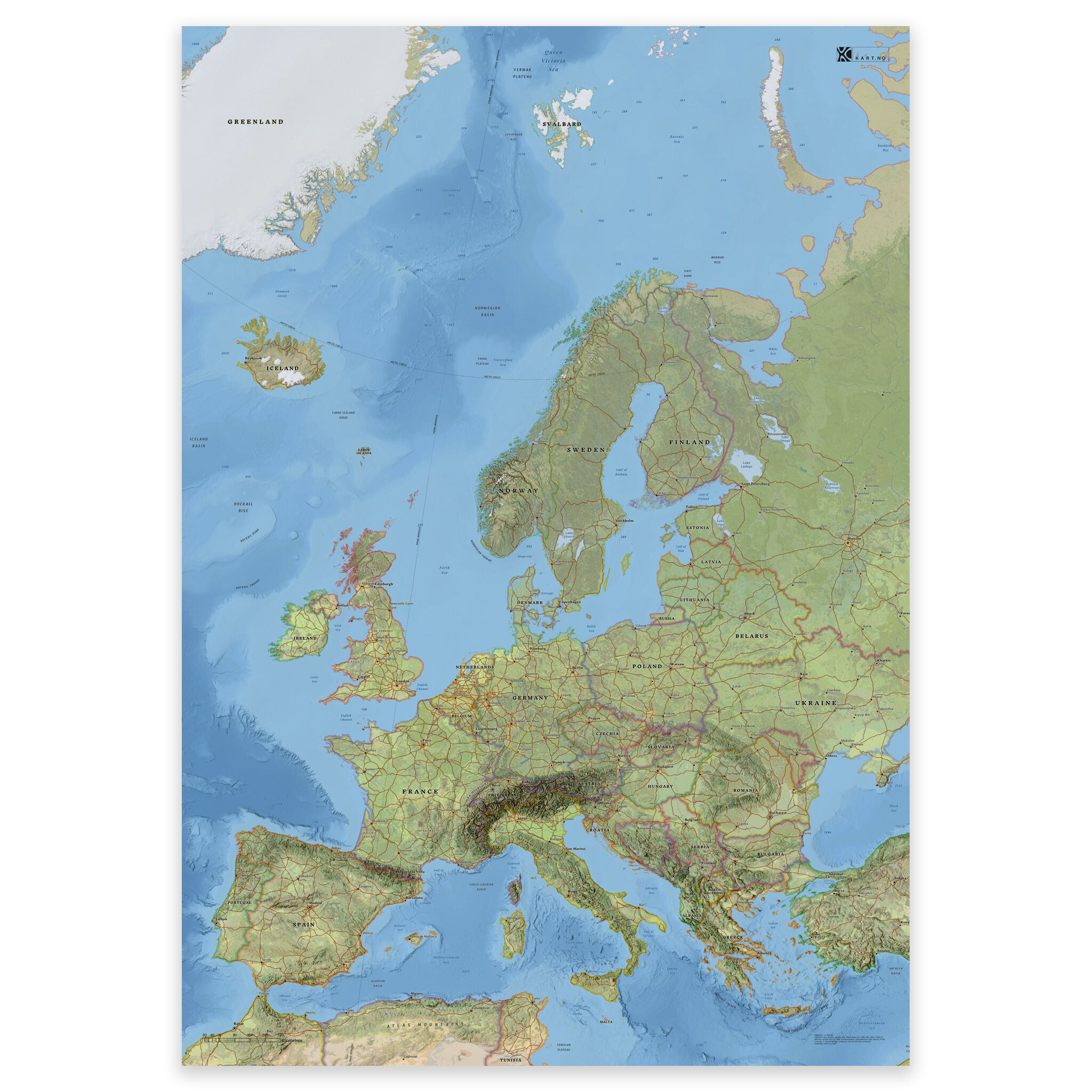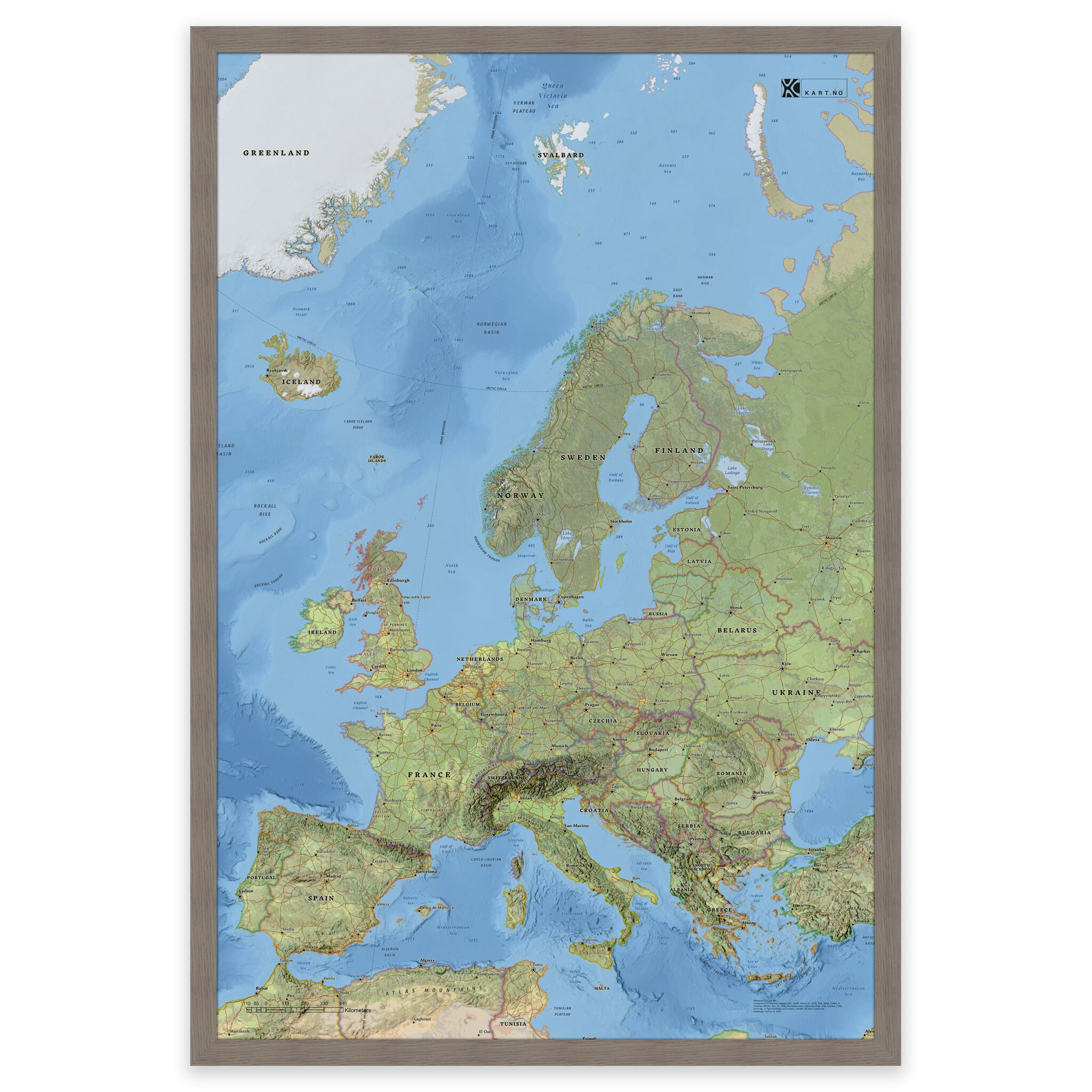 Stilrent og detaljert Europakart – tilgjengelig i fem størrelser.