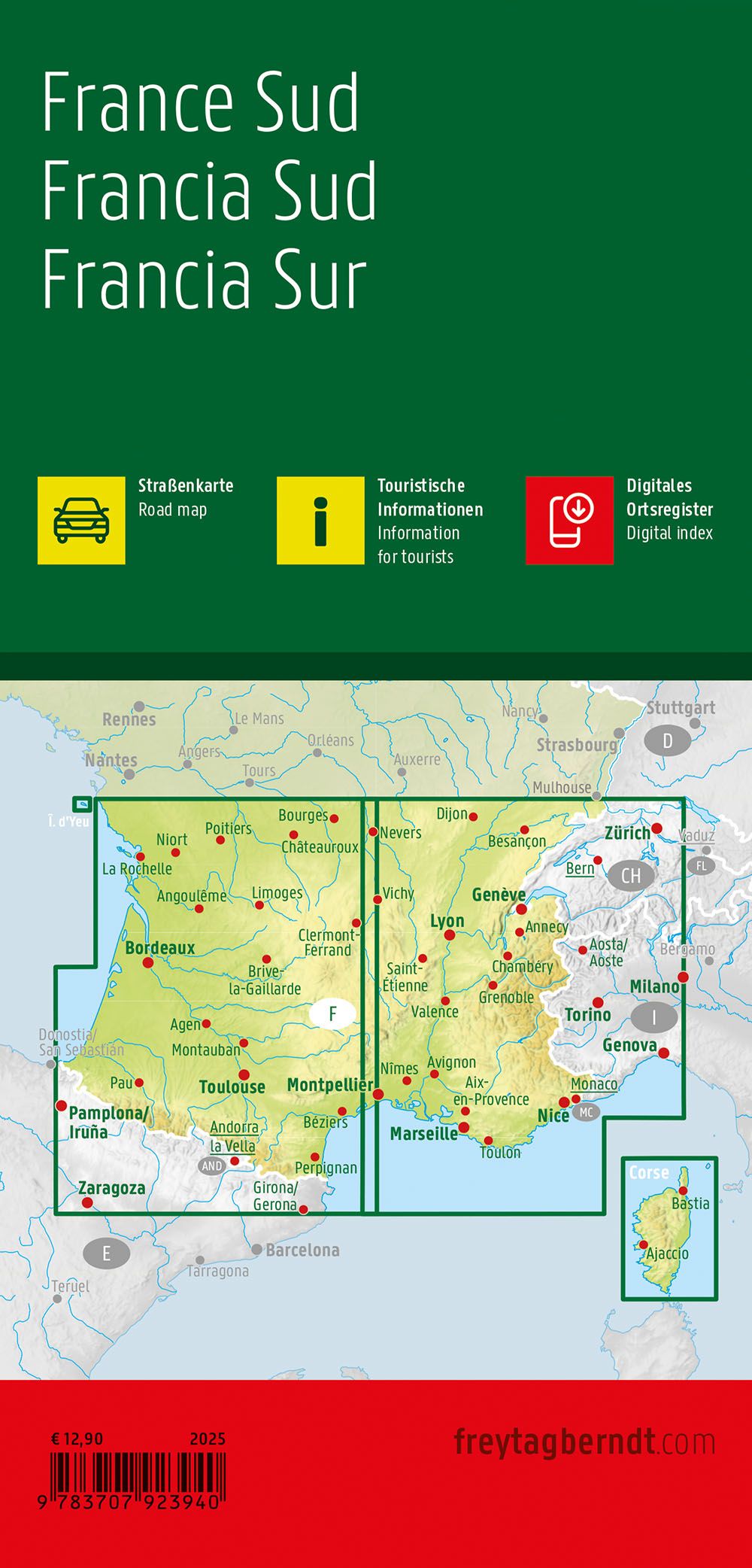 Dette er et oversiktlig og detaljert veikart over Sør-Frankrike, utviklet for reisende som ferdes med bil, motorsykkel eller bobil. Kartet dekker sentrale og sørlige deler av landet, inkludert blant annet Provence-Alpes-Côte d’Azur, Okzitanien, Rhône-dalen og Camargue, og gir god oversikt over både hovedveier og viktige regionale forbindelser.