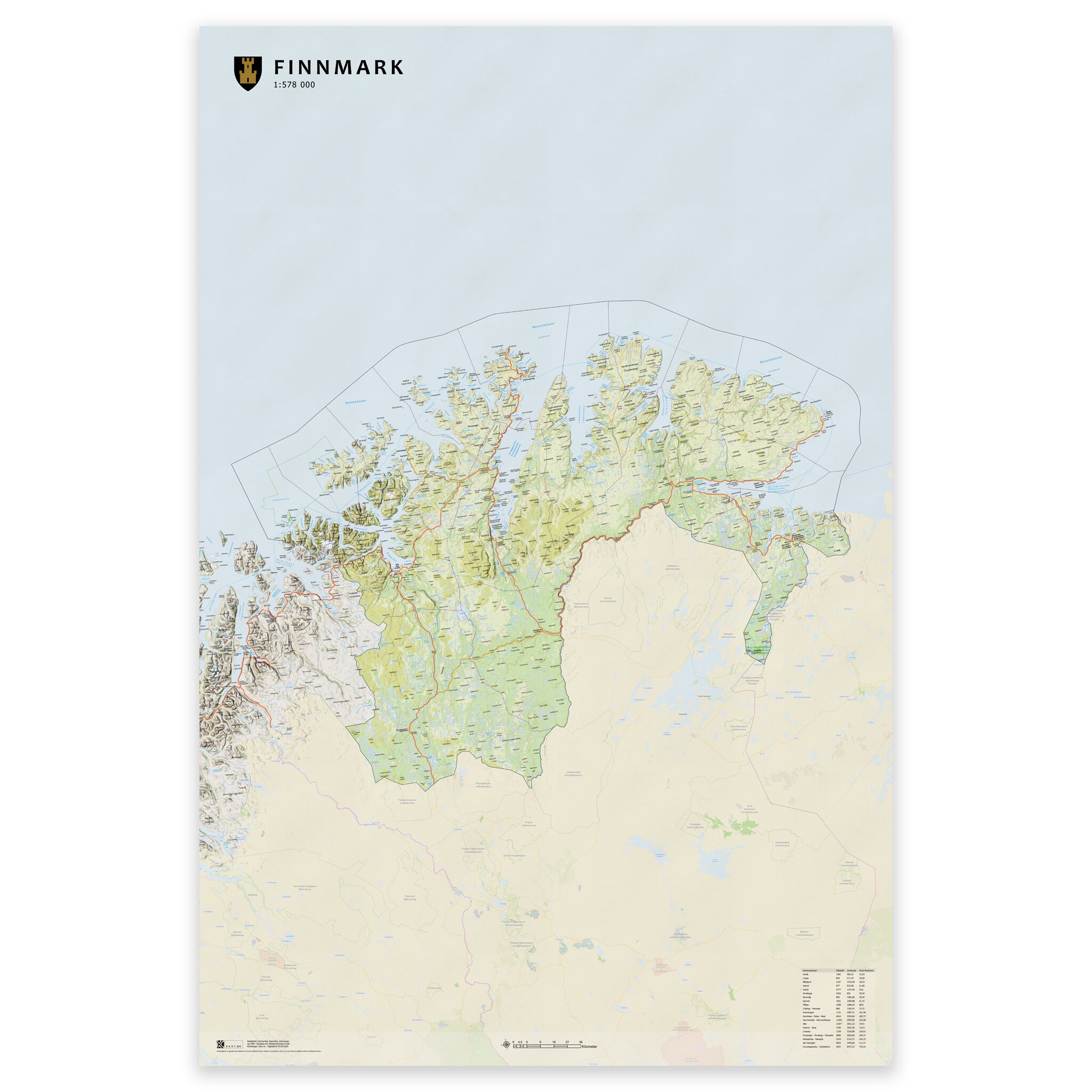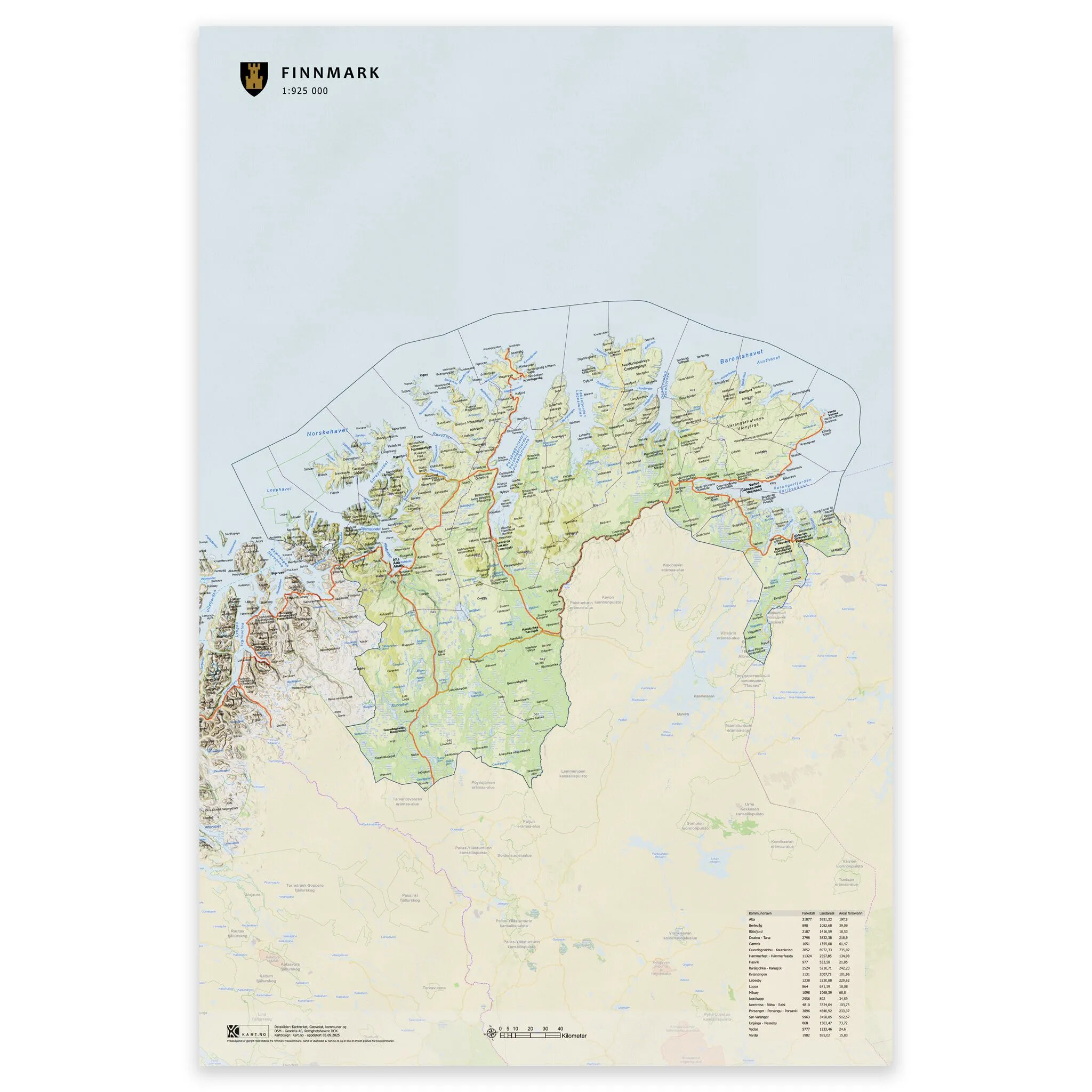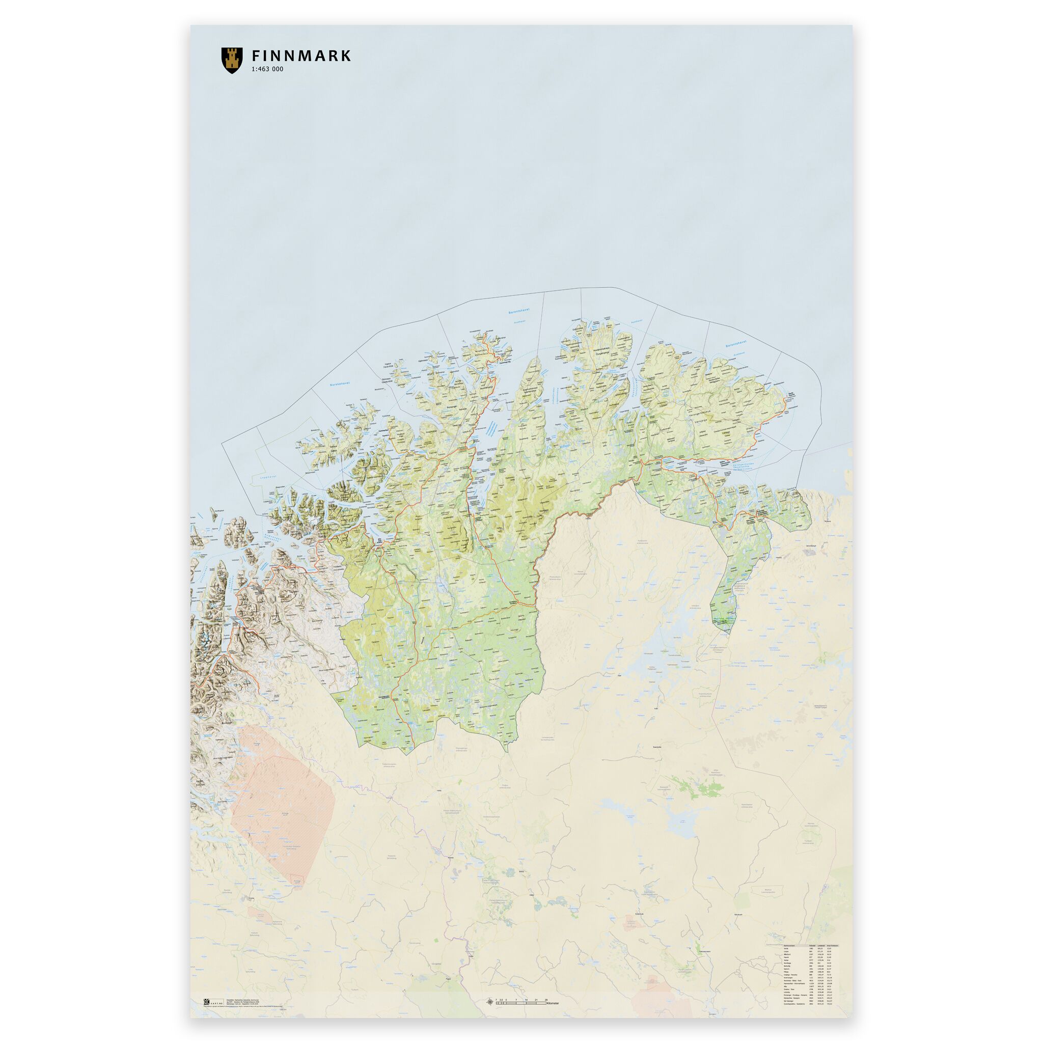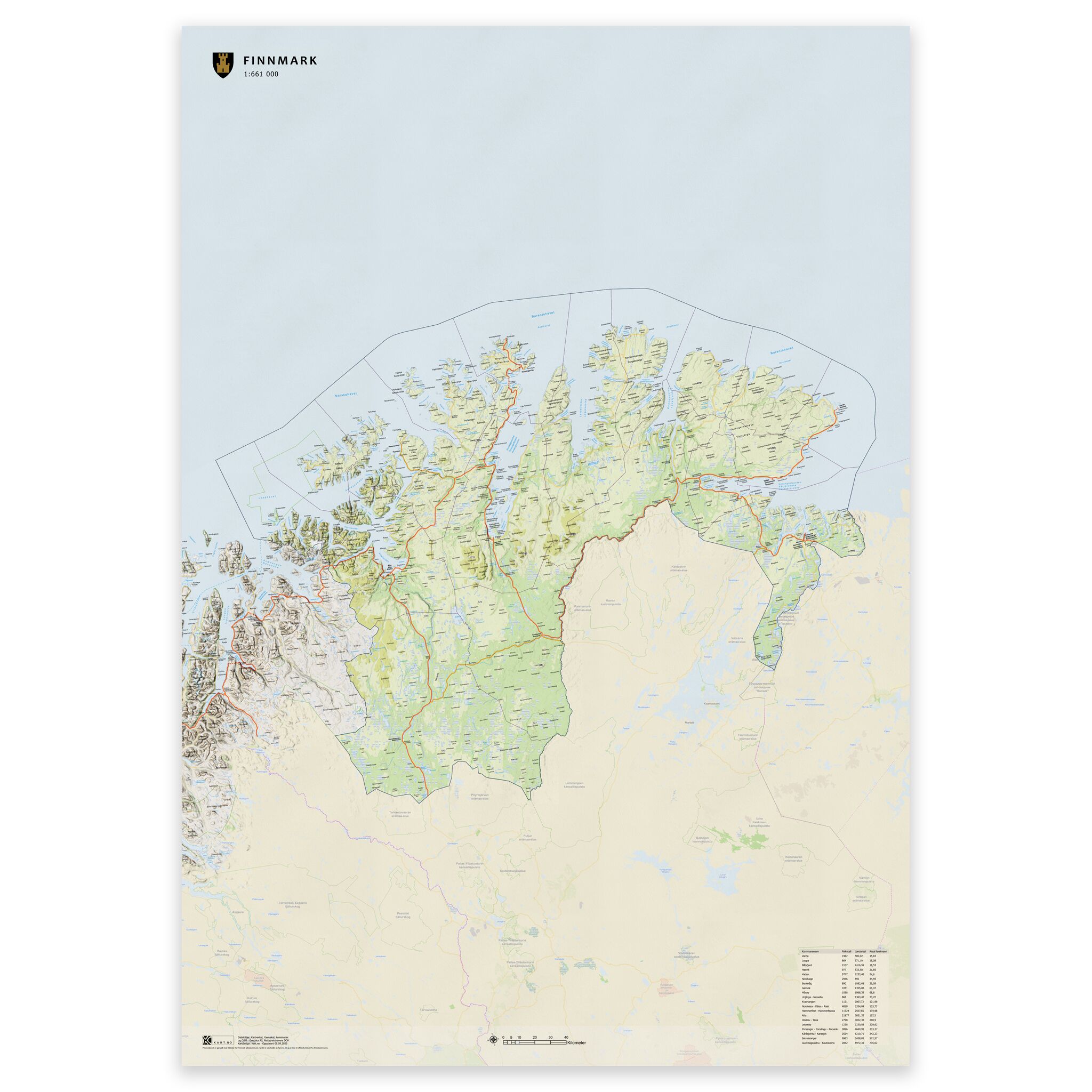Stilrent og detaljert kart over Finnmark – tilgjengelig i fem størrelser.