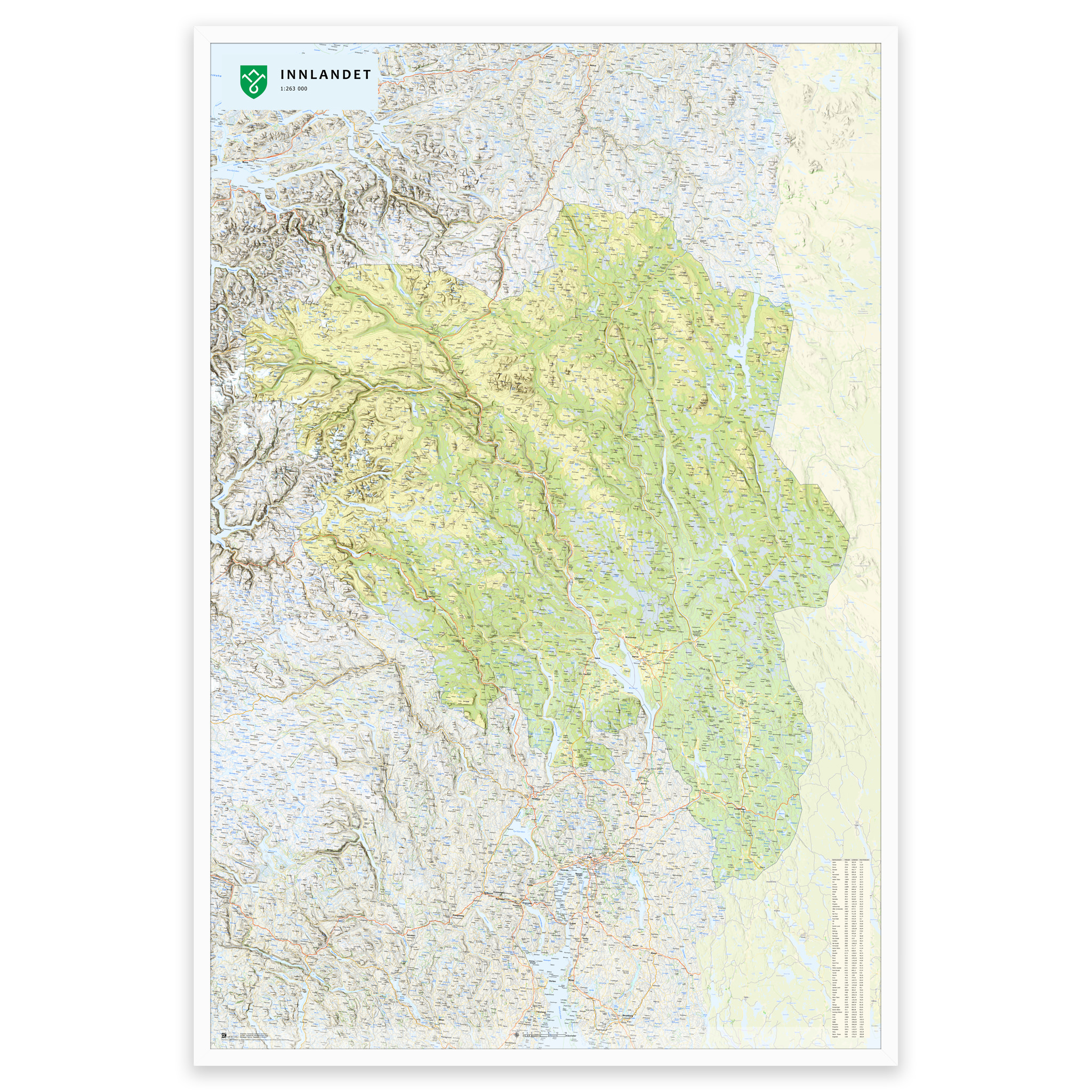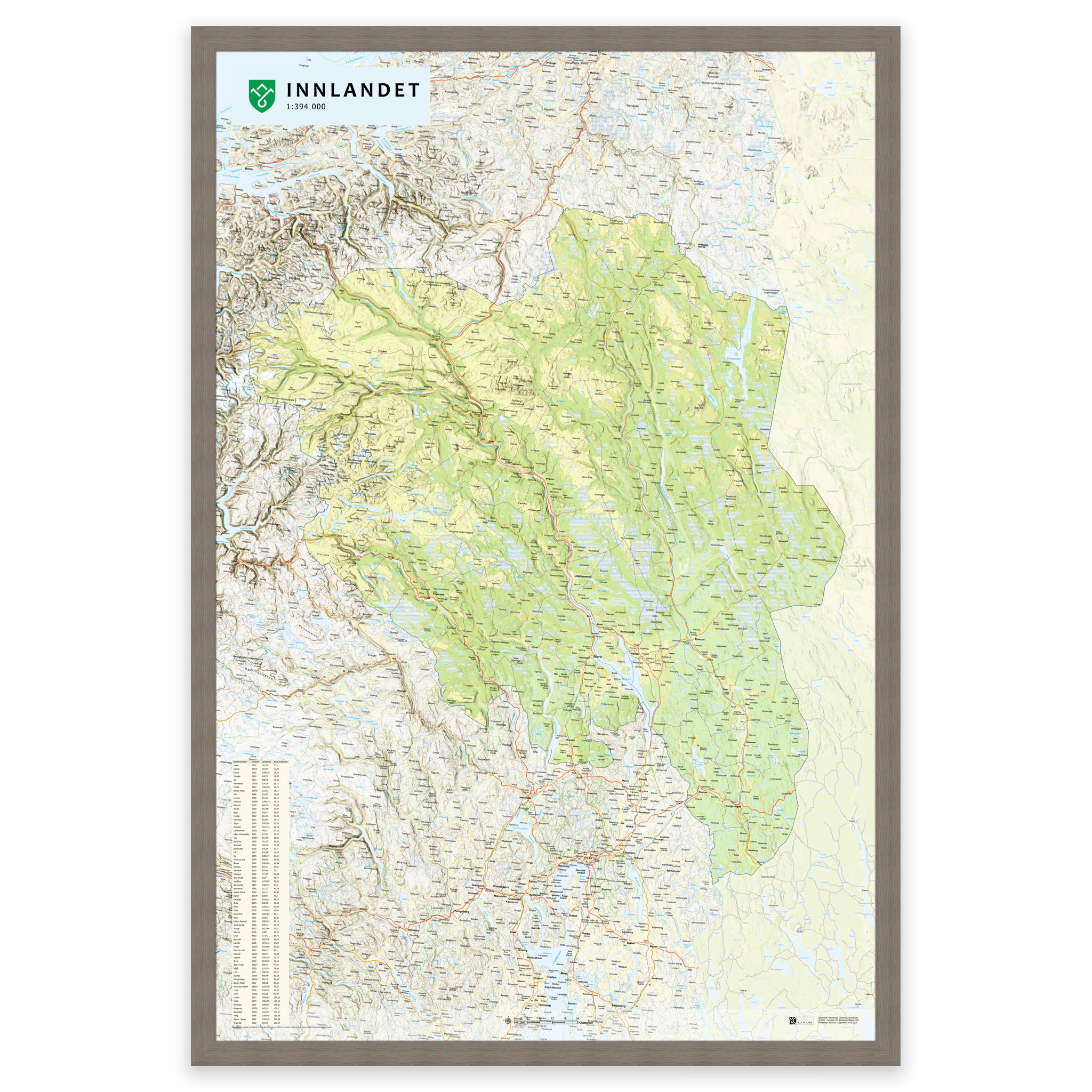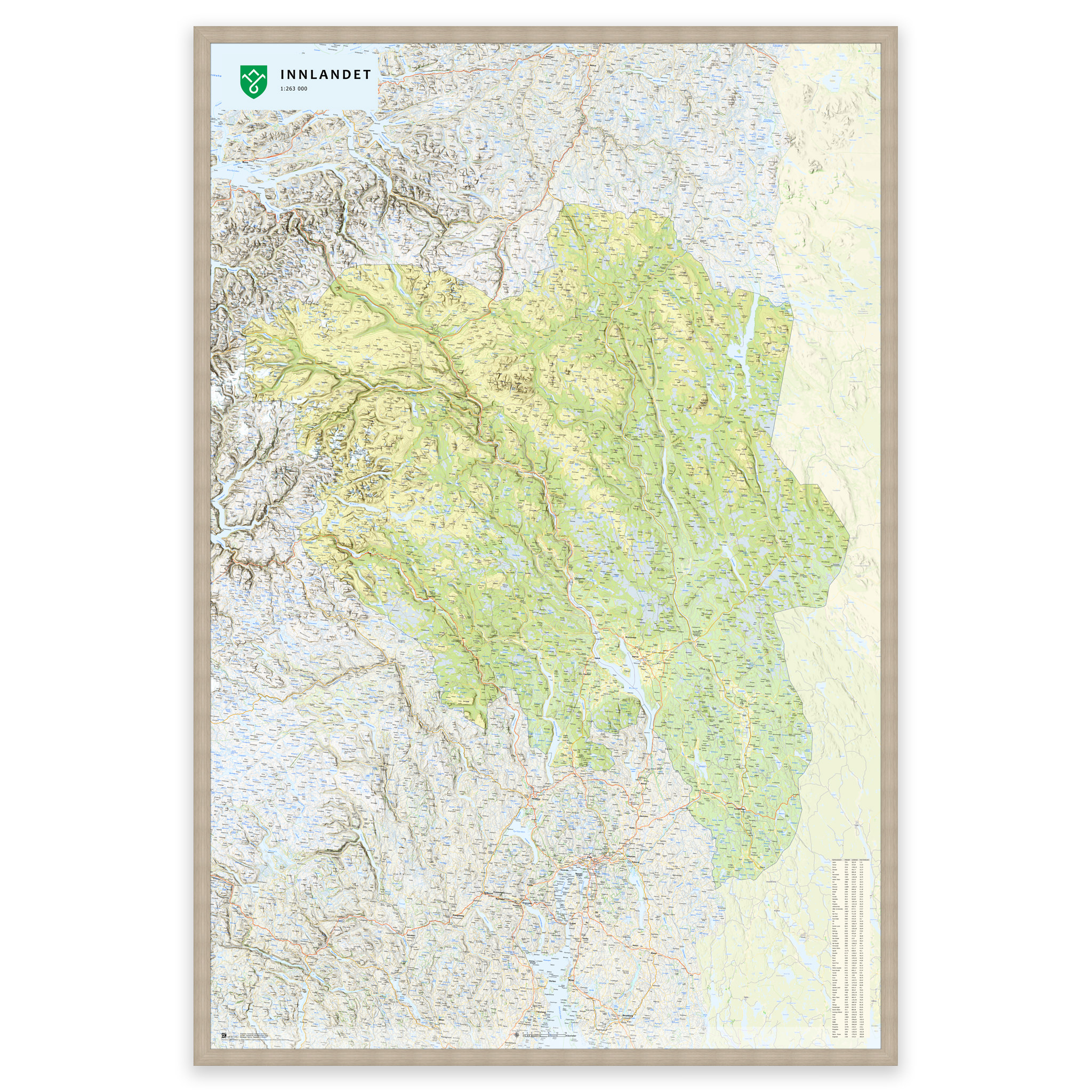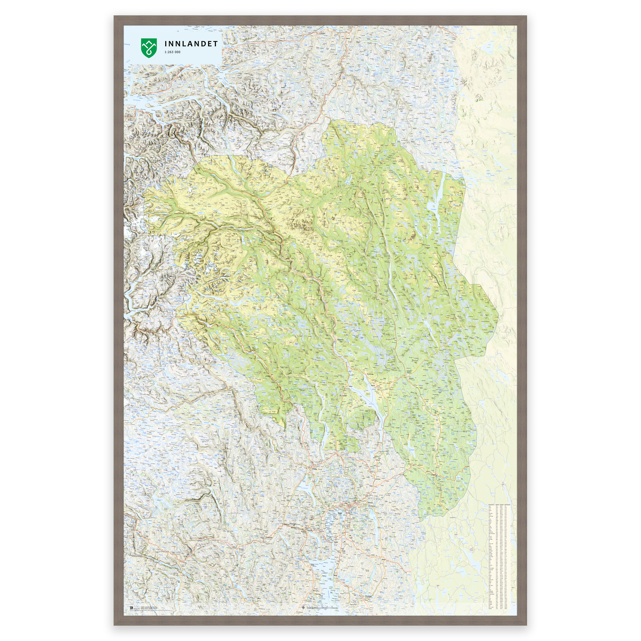 Stilrent og detaljert kart over Innlandet – tilgjengelig i fem størrelser.