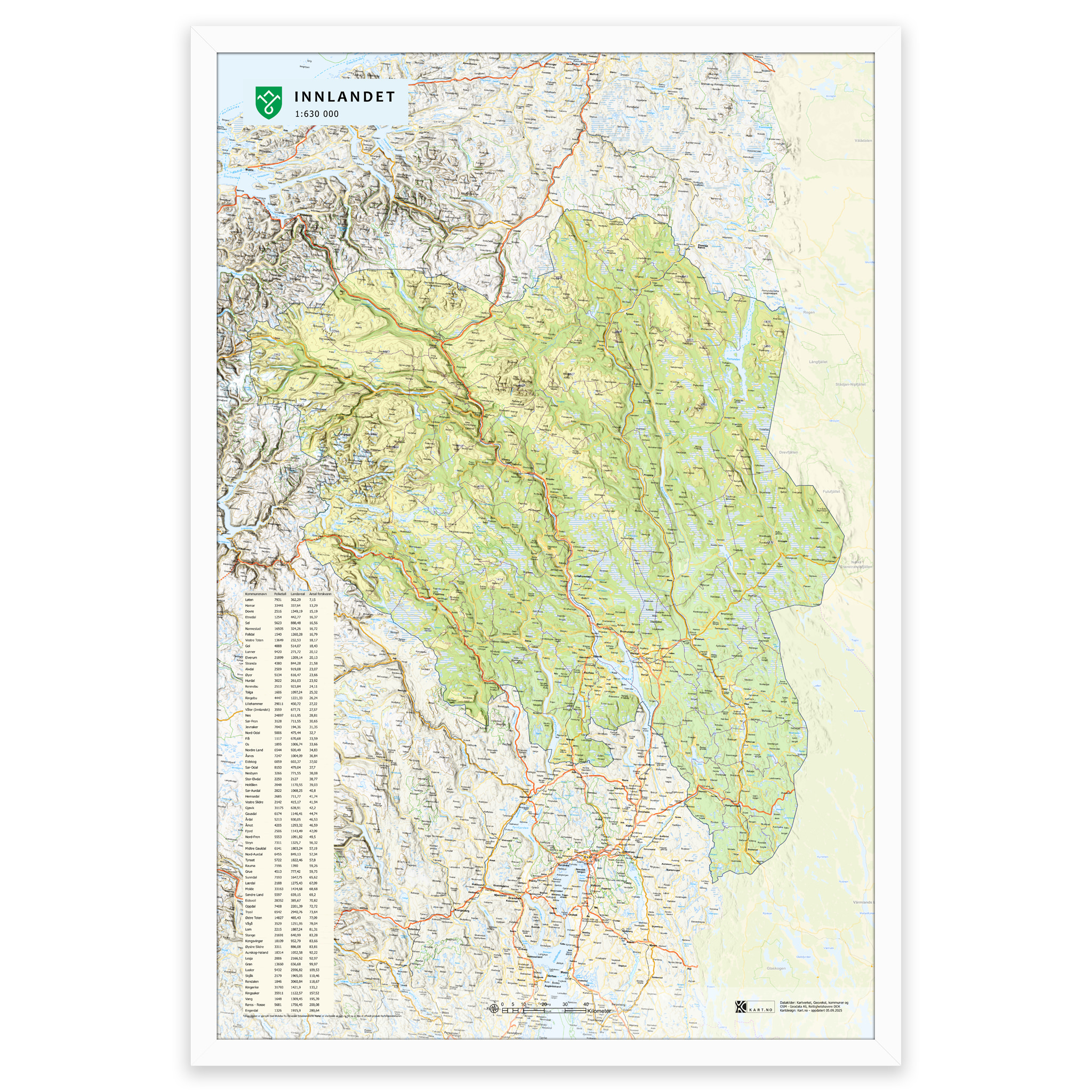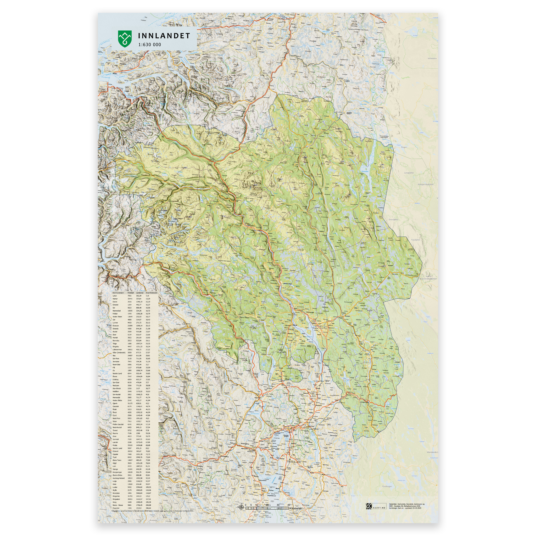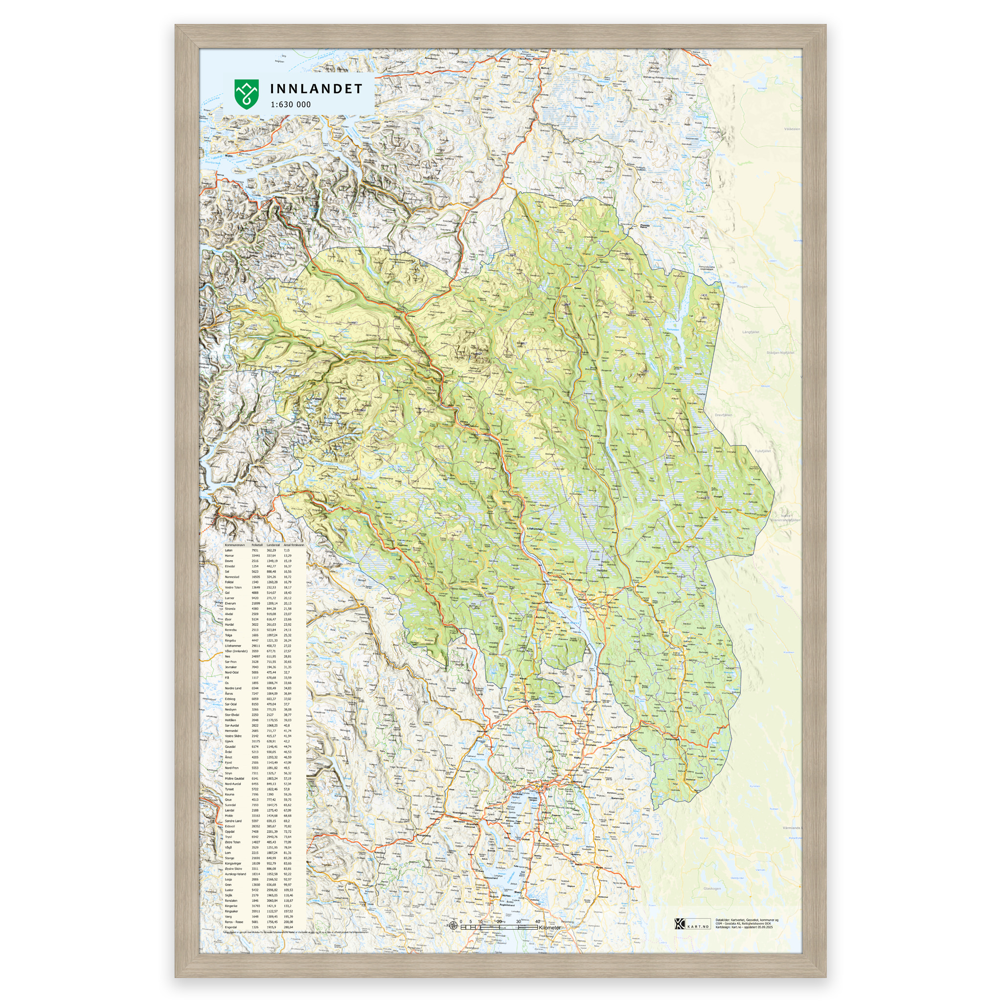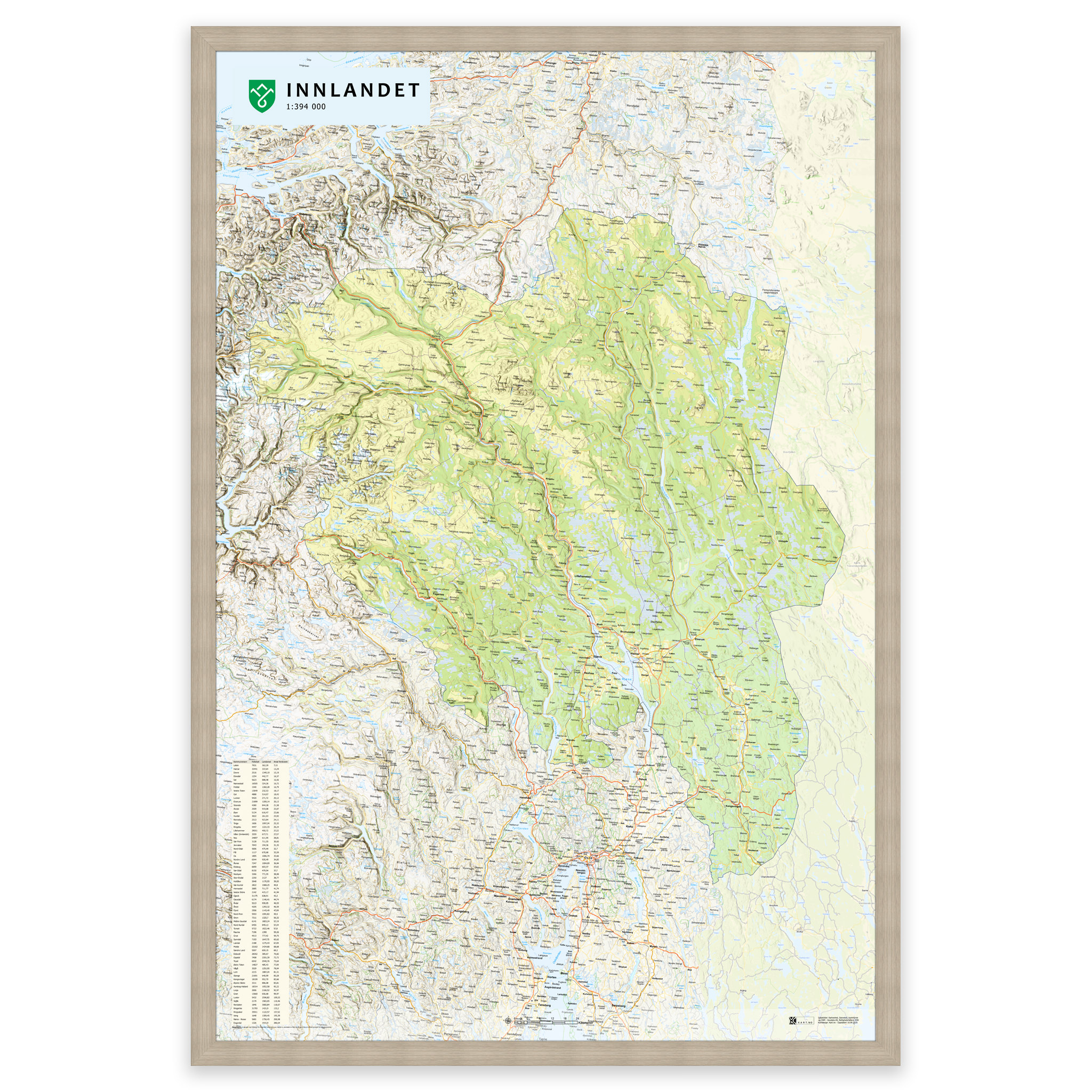 Stilrent og detaljert kart over Innlandet – tilgjengelig i fem størrelser.