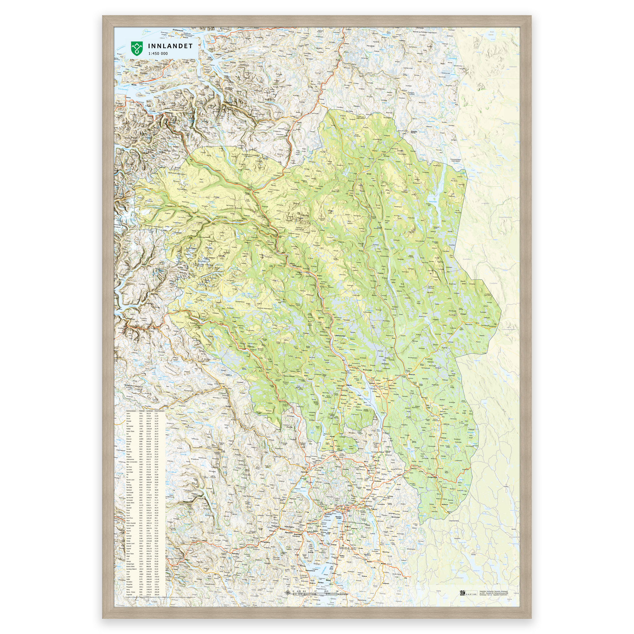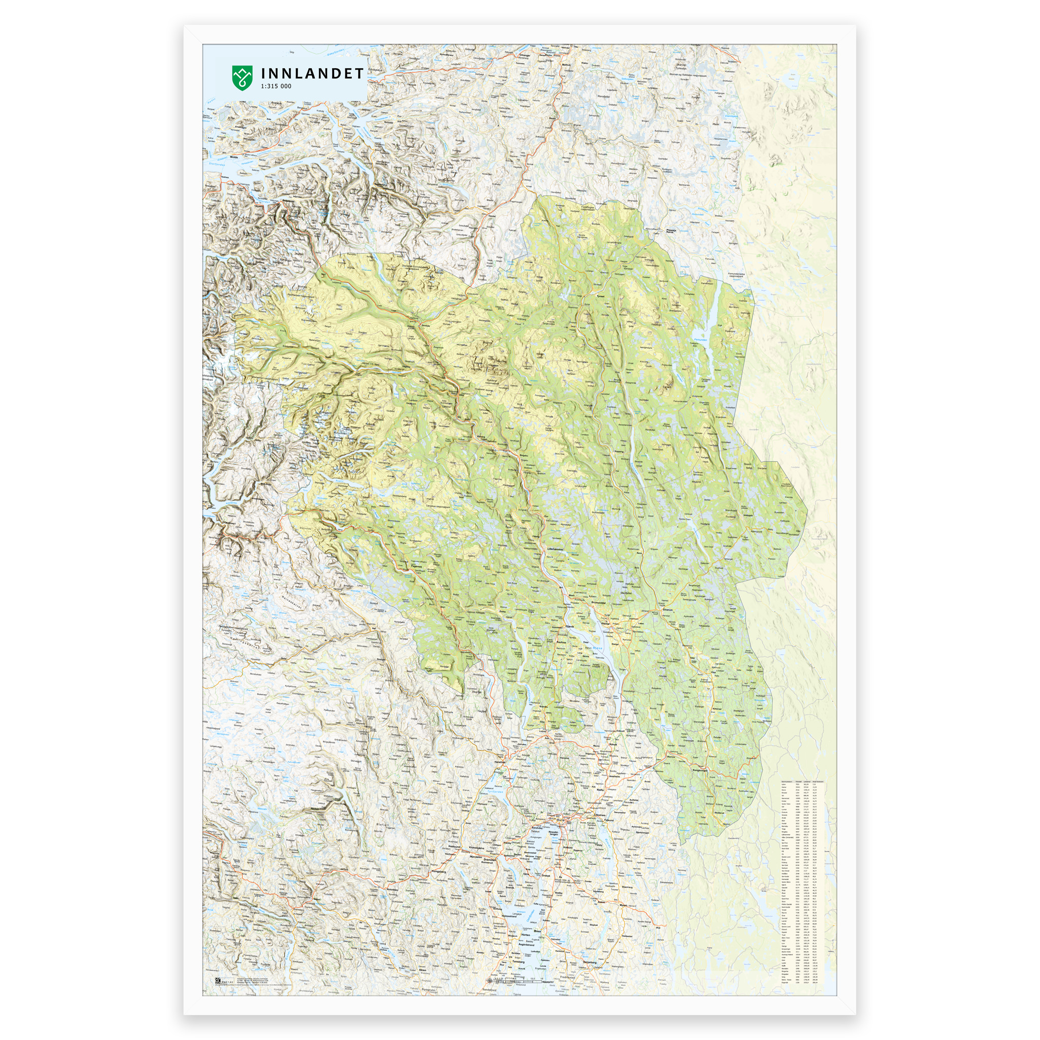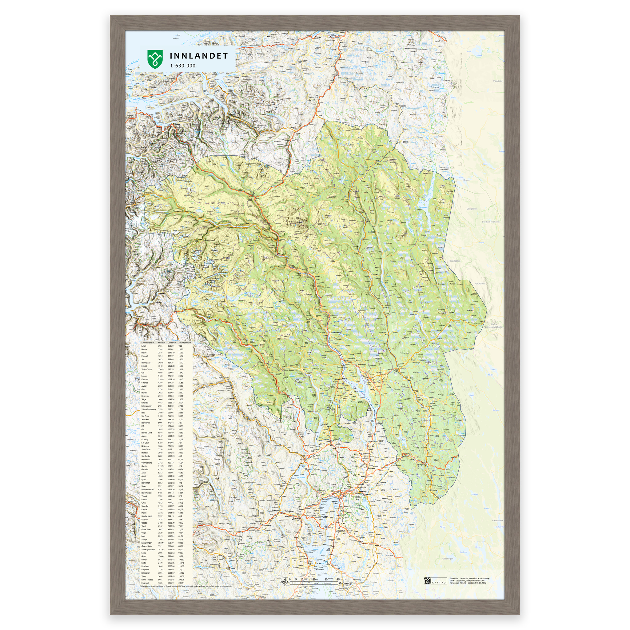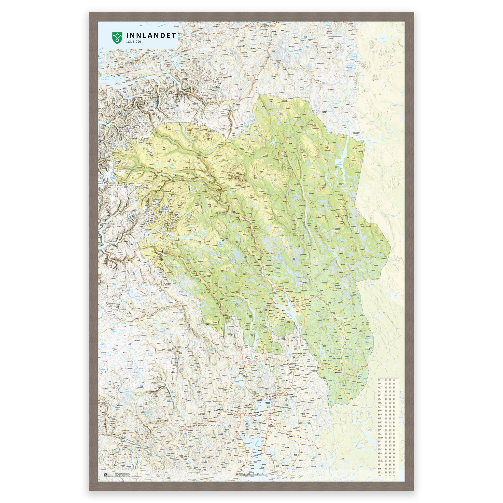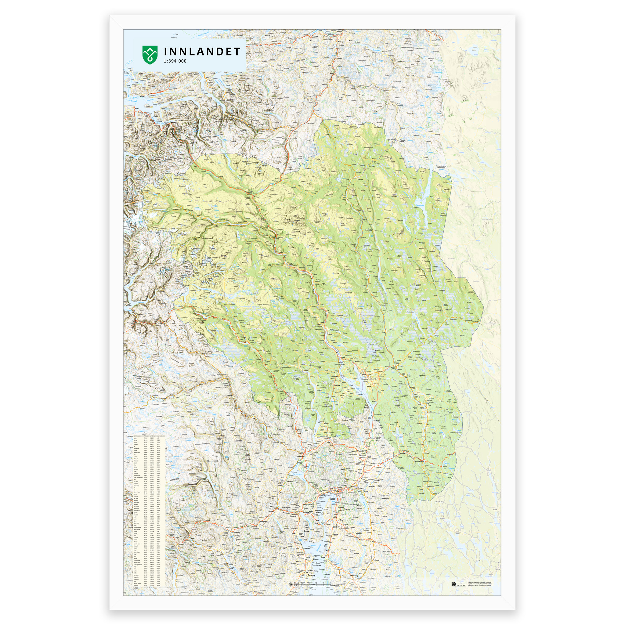 Stilrent og detaljert kart over Innlandet – tilgjengelig i fem størrelser.