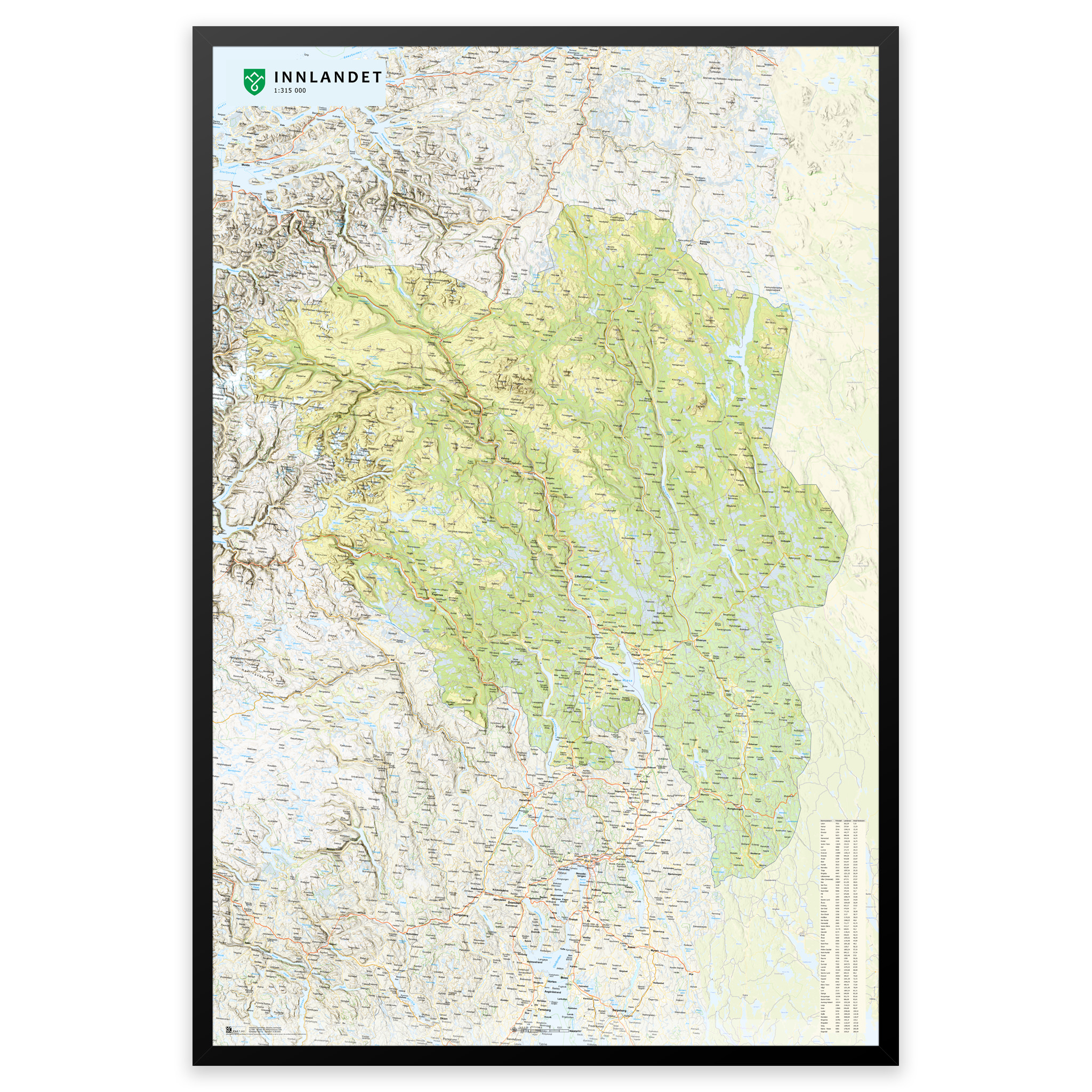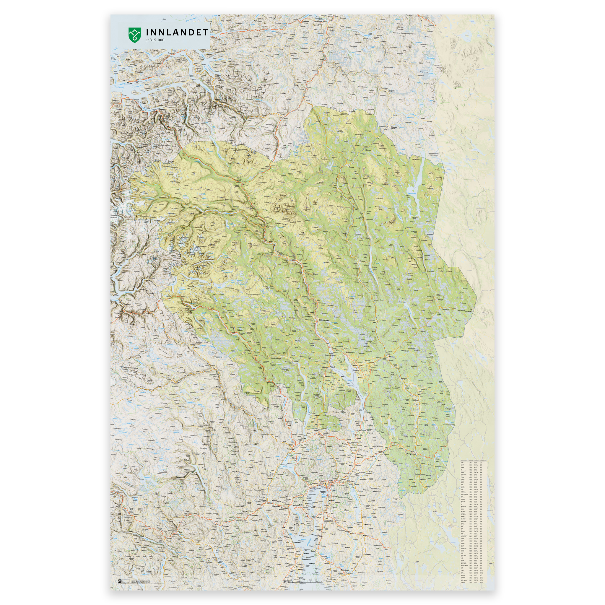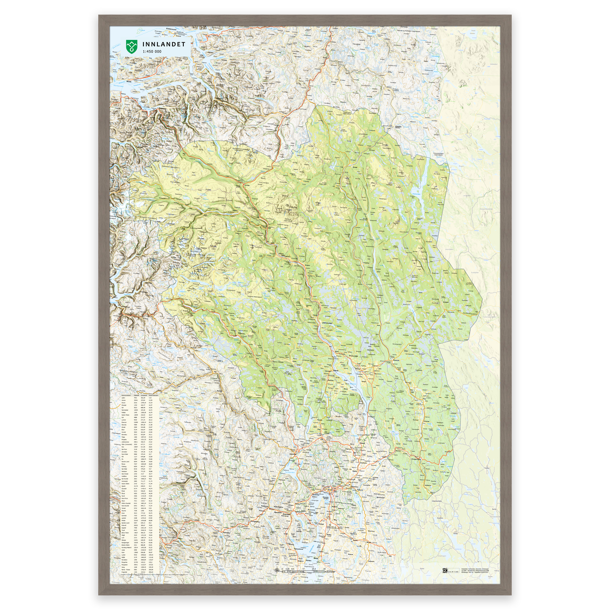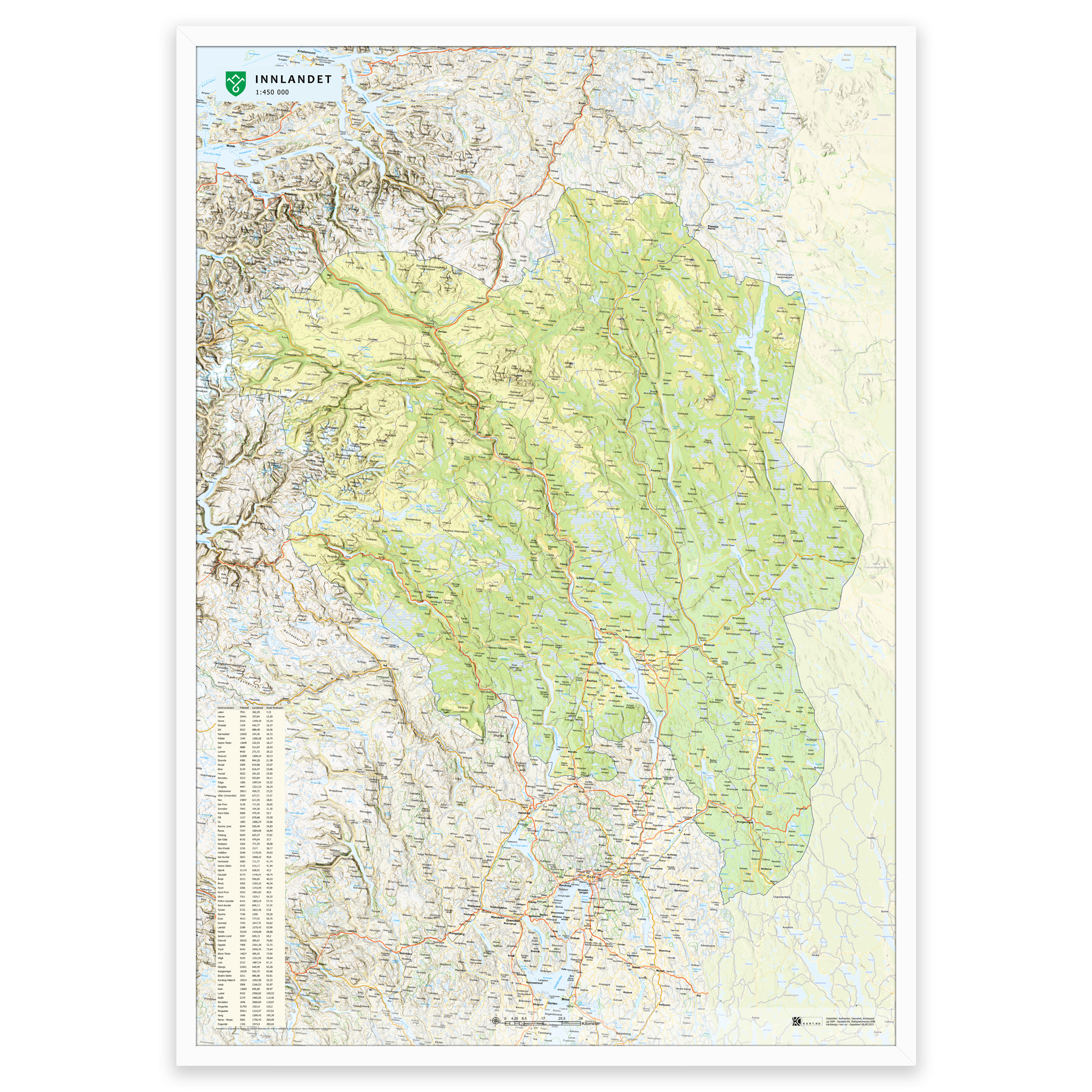 Stilrent og detaljert kart over Innlandet – tilgjengelig i fem størrelser.