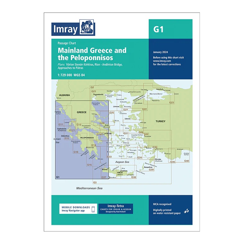Kartet dekker blant annet innseilingen til Korintkanalen, området rundt Ríon–Antírrion-broen og tilnærminger mot Pátras. Som alle Imray-kart er det produsert i henhold til MCA-standard og trykket på slitesterkt, vannbestandig papir. Kartet er også kompatibelt med Imray Navigator-appen via mobile nedlastinger.