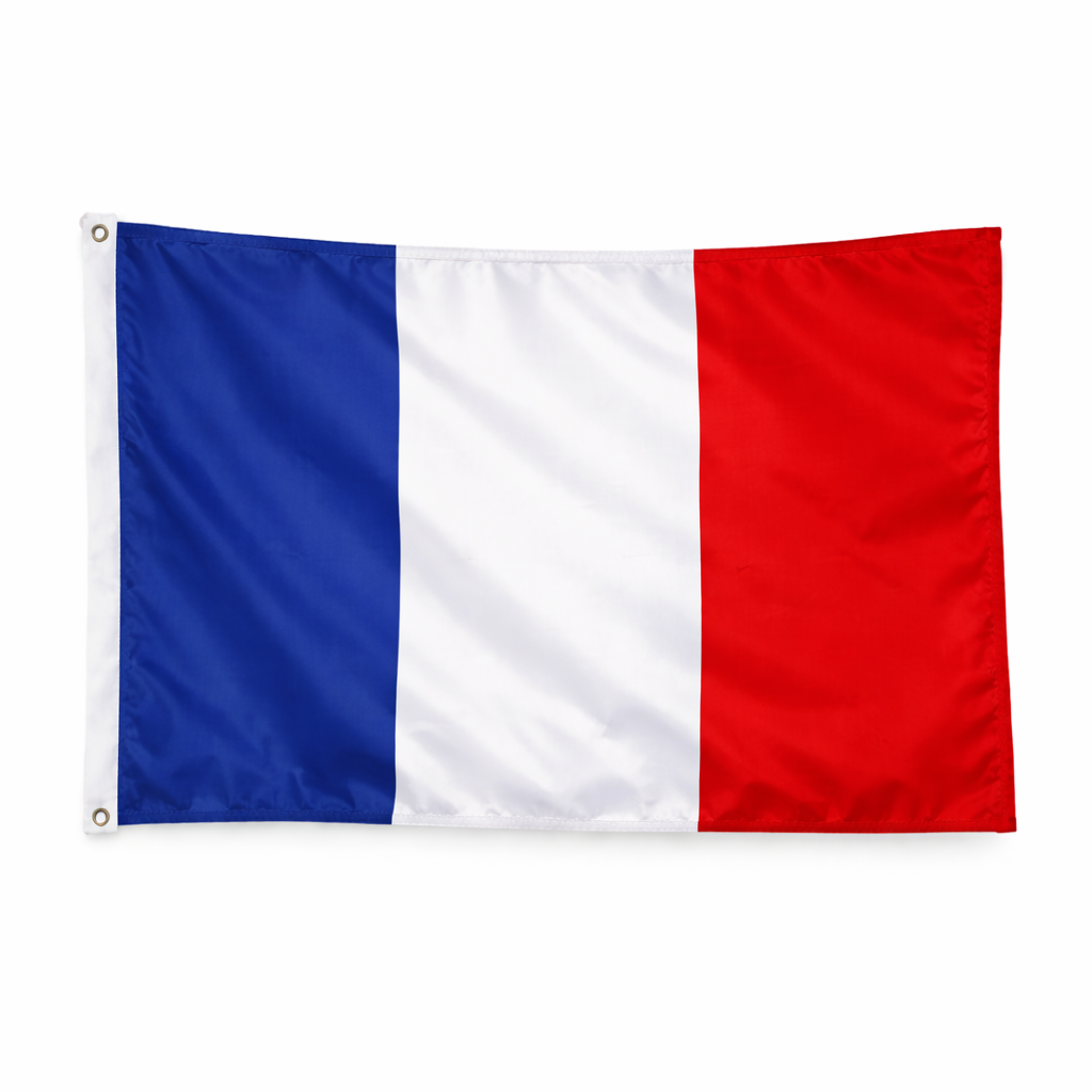 Flagget er produsert i 100 % polyester og er tilpasset bruk i maritime omgivelser, med god slitestyrke og lav vekt. Størrelsen er 30 × 19 cm, som er standard format for gjesteflagg og egner seg både for seilbåter og motorbåter. Det franske gjesteflagget kan brukes alene eller inngå i et flaggspill sammen med andre lands flagg, for eksempel ved lengre seilaser eller internasjonale besøk. Flagget selges enten enkeltvis eller som del av regionspakker, avhengig av variant.