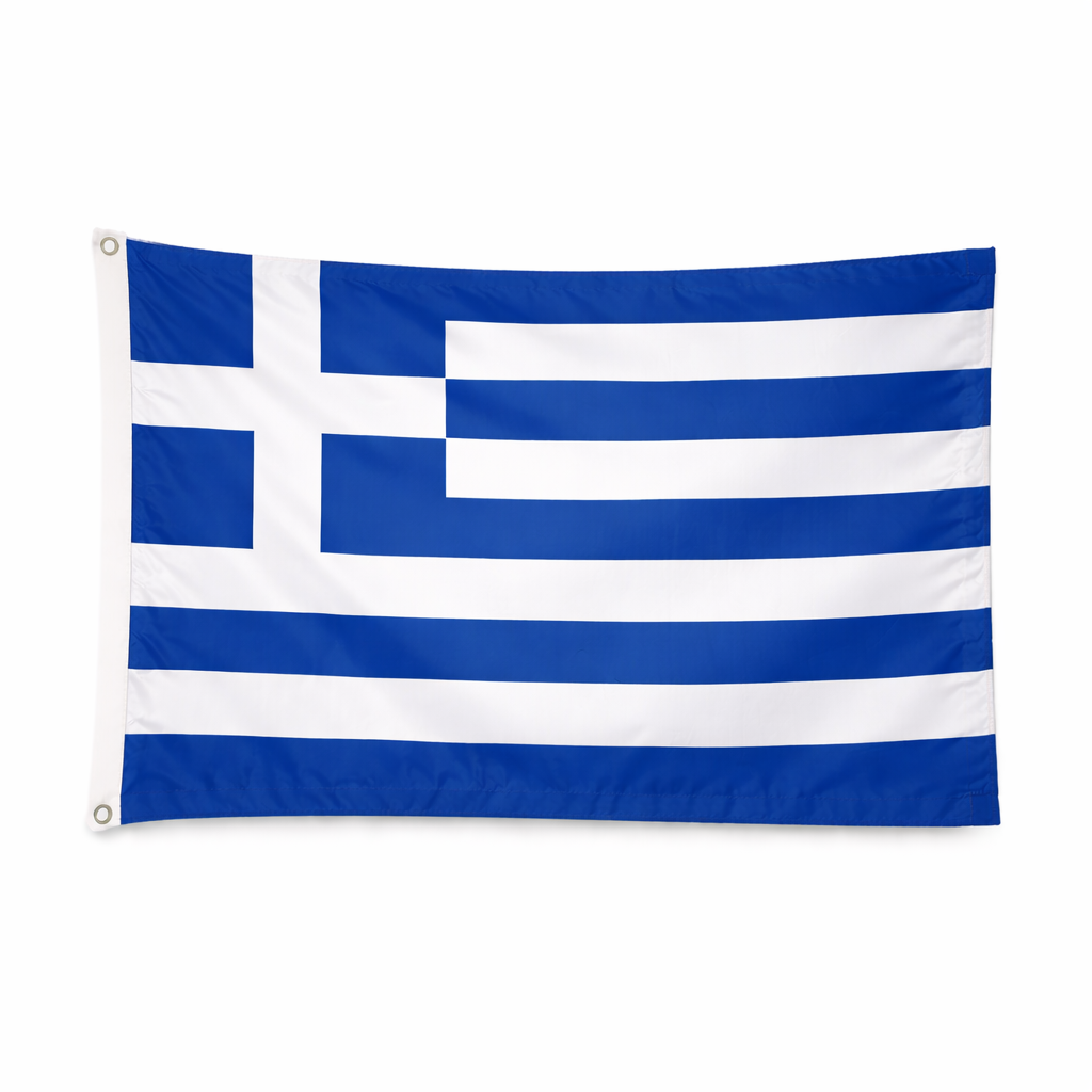 Flagget er produsert i 100 % polyester og er tilpasset bruk i maritime omgivelser, med god slitestyrke og lav vekt. Størrelsen er 30 × 19 cm, som er standard format for gjesteflagg og egner seg både for seilbåter og motorbåter. Det greske gjesteflagget kan brukes alene eller inngå i et flaggspill sammen med andre lands flagg, for eksempel ved lengre seilaser eller internasjonale besøk. Flagget selges enten enkeltvis eller som del av regionspakker, avhengig av variant.