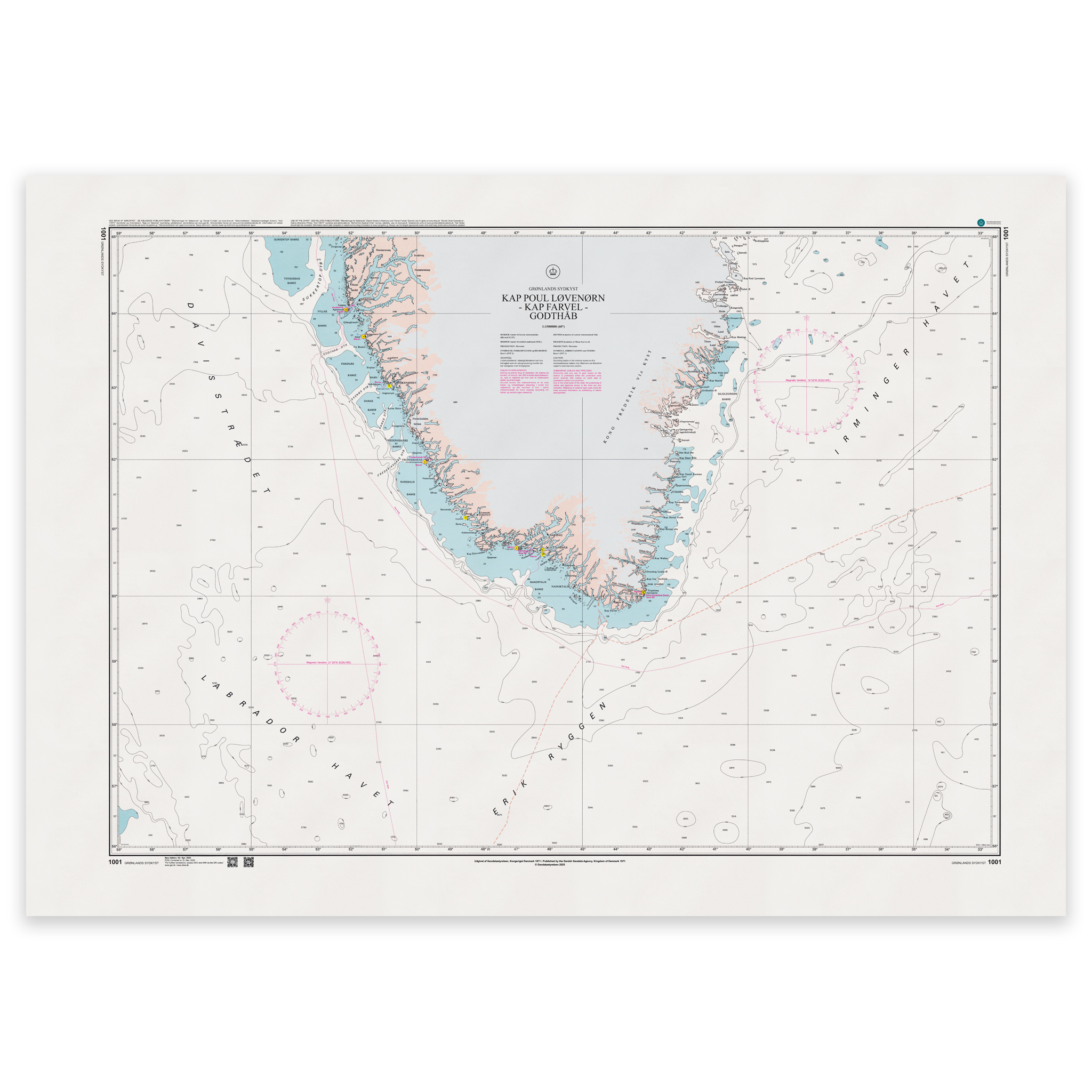 Kart 1001 dekker deler av Grønland og er utgitt i målestokk 1:1 500 000.