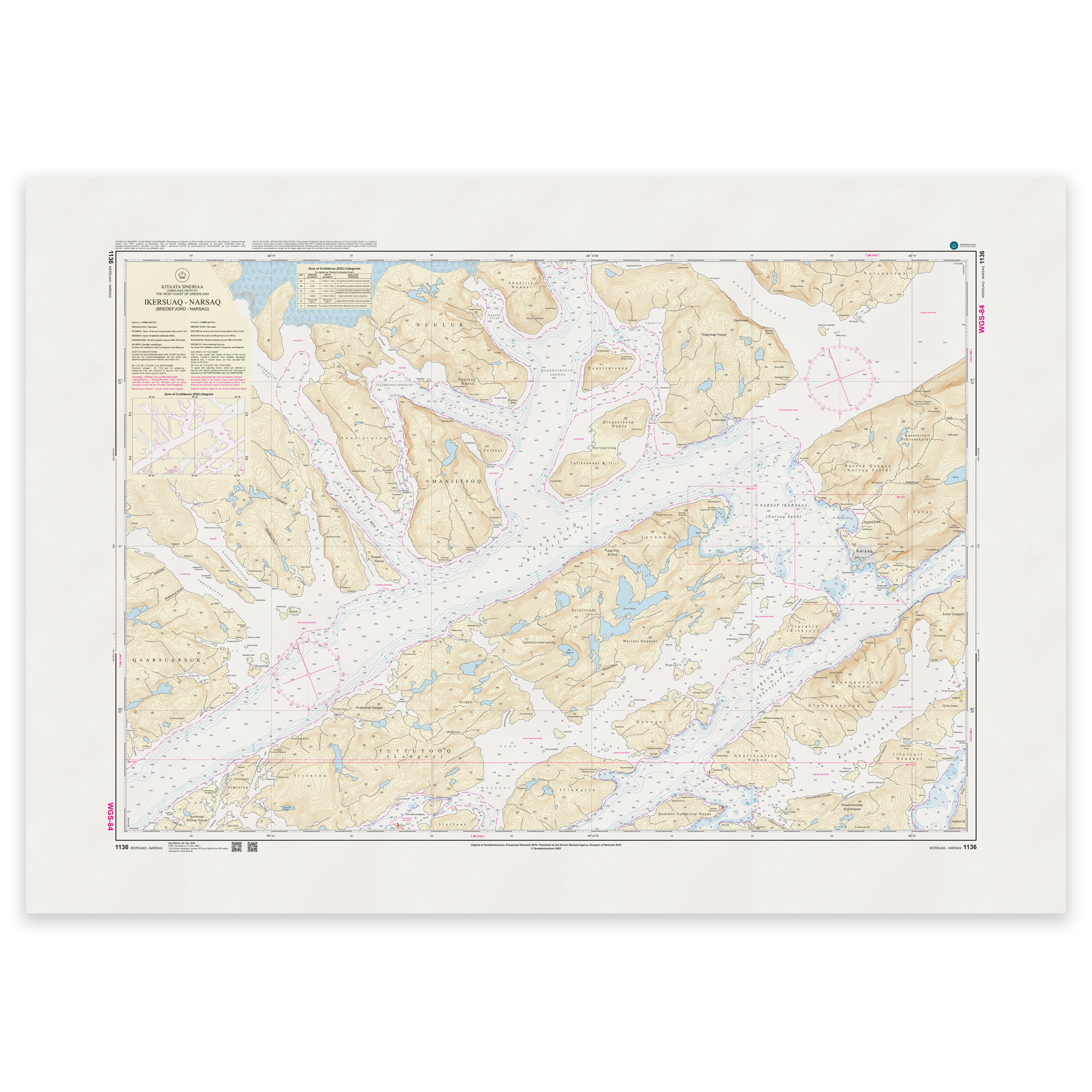 Kart 1136 dekker deler av Grønland og er utgitt i målestokk 1:50 000.