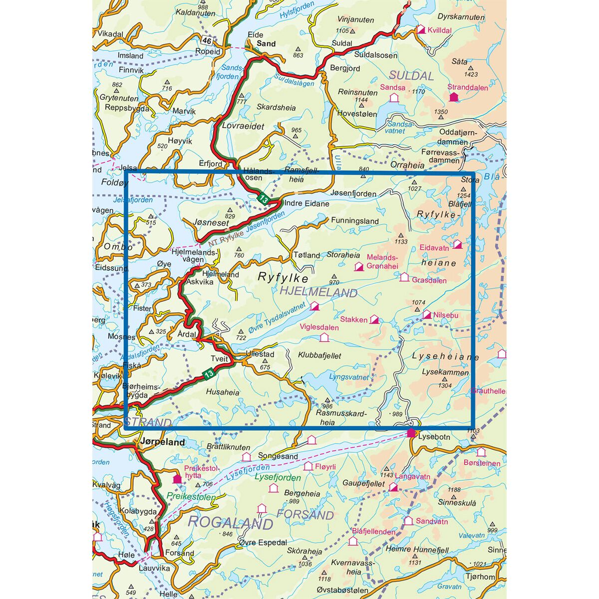 Turkart Hjelmelandsheiane dekker turområdene rundt Hjelmeland, Vormedalsheia, øvre Tysdalsvatnet og Lyngsvatnet.