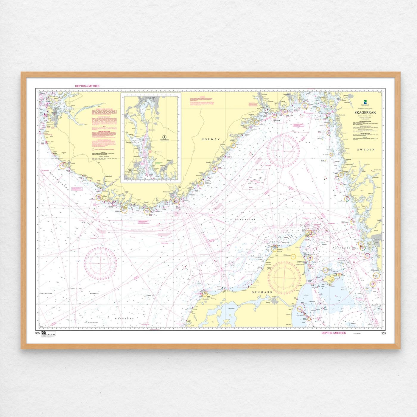 Sjøkart kan rammes inn med eller uten passepartout. Velger du passepartout til kartet øker totalstørrelsen. Passepartout er 1,8 mm tykt og produsert av Canson. Kart blir rammet inn med floatglass uten avstandslister.