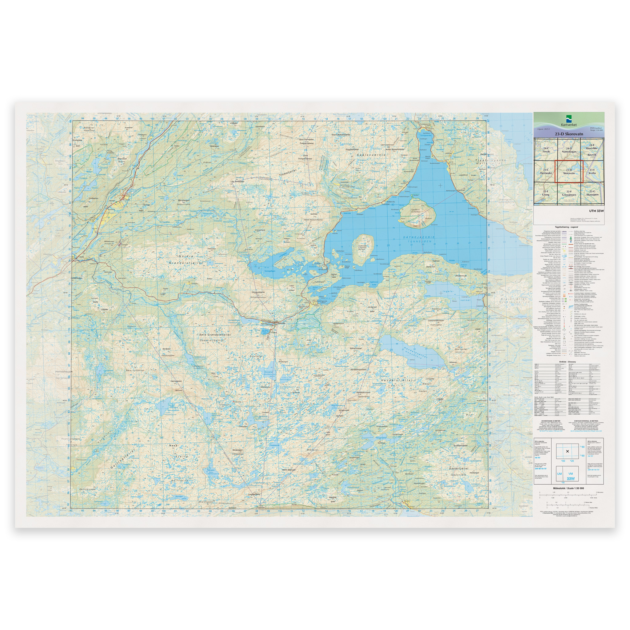 Kartverket – landkart (N50): 23-D Skorovatn