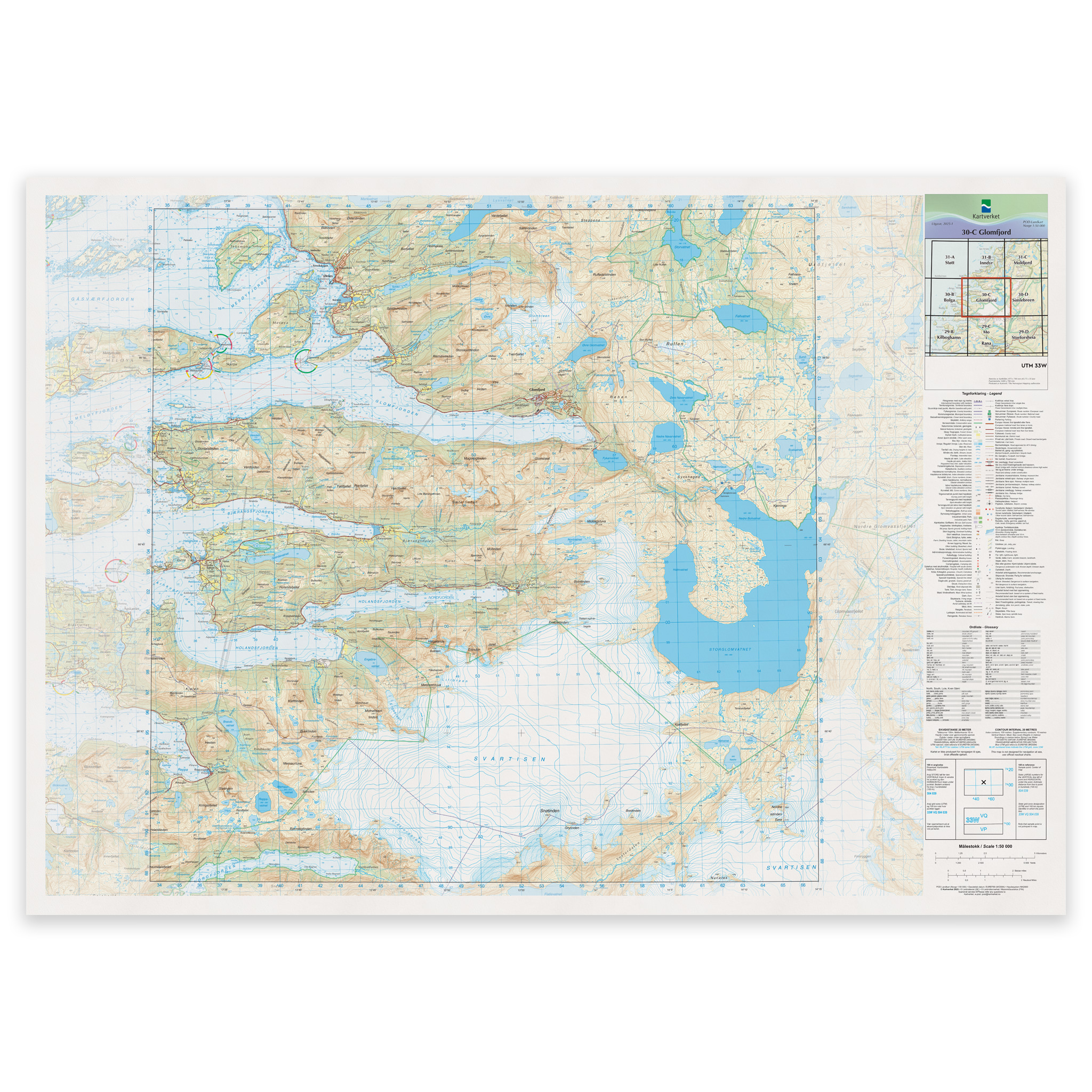 Kartverkets klassiske landkartserie (N50)- i ny oppdatert utgave, utgitt i mai 2025. Viser bebyggelse, høydekurver, skog, dyrka mark, kystkontur, elver, bekker, vann, myr, breer, veier, stier, jernbaner, flyplasser, kommunegrenser, verneområder, samt detaljert dybde- og navigasjonsinformasjon hentet fra sjøkartene. Kartet har har målestokk 1:50.000 og leveres på rull i størrelse 103 x 73 cm. Kan også leveres på plate eller ferdig innrammet. Størrelse med passepartout og ramme er 124 x 93 cm.