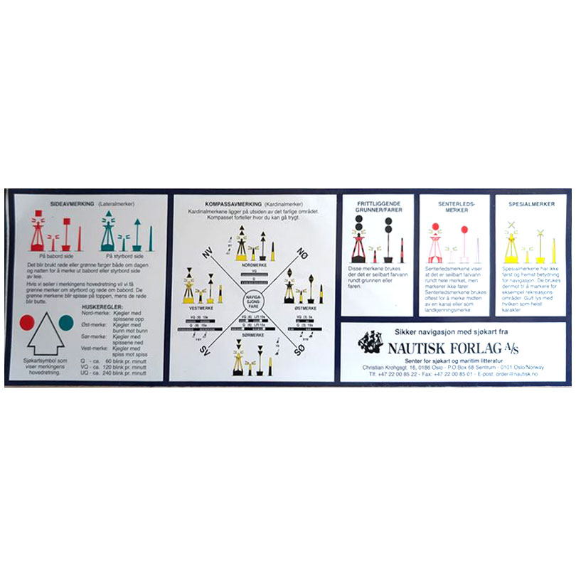Klistremerke med sjømerker fra Nautisk forlag i størreles 30×10 cm.