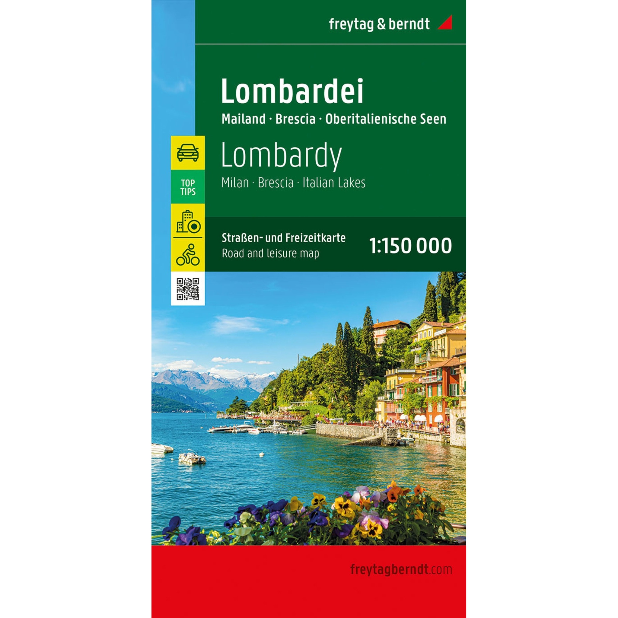 Dette veikartet dekker Lombardia i Nord-Italia, inkludert områdene rundt Milano, Brescia og de norditalienske innsjøene. Kartet gir en detaljert og oversiktlig fremstilling av regionens veinett og landskap, og egner seg godt både til planlegging og gjennomføring av reiser.