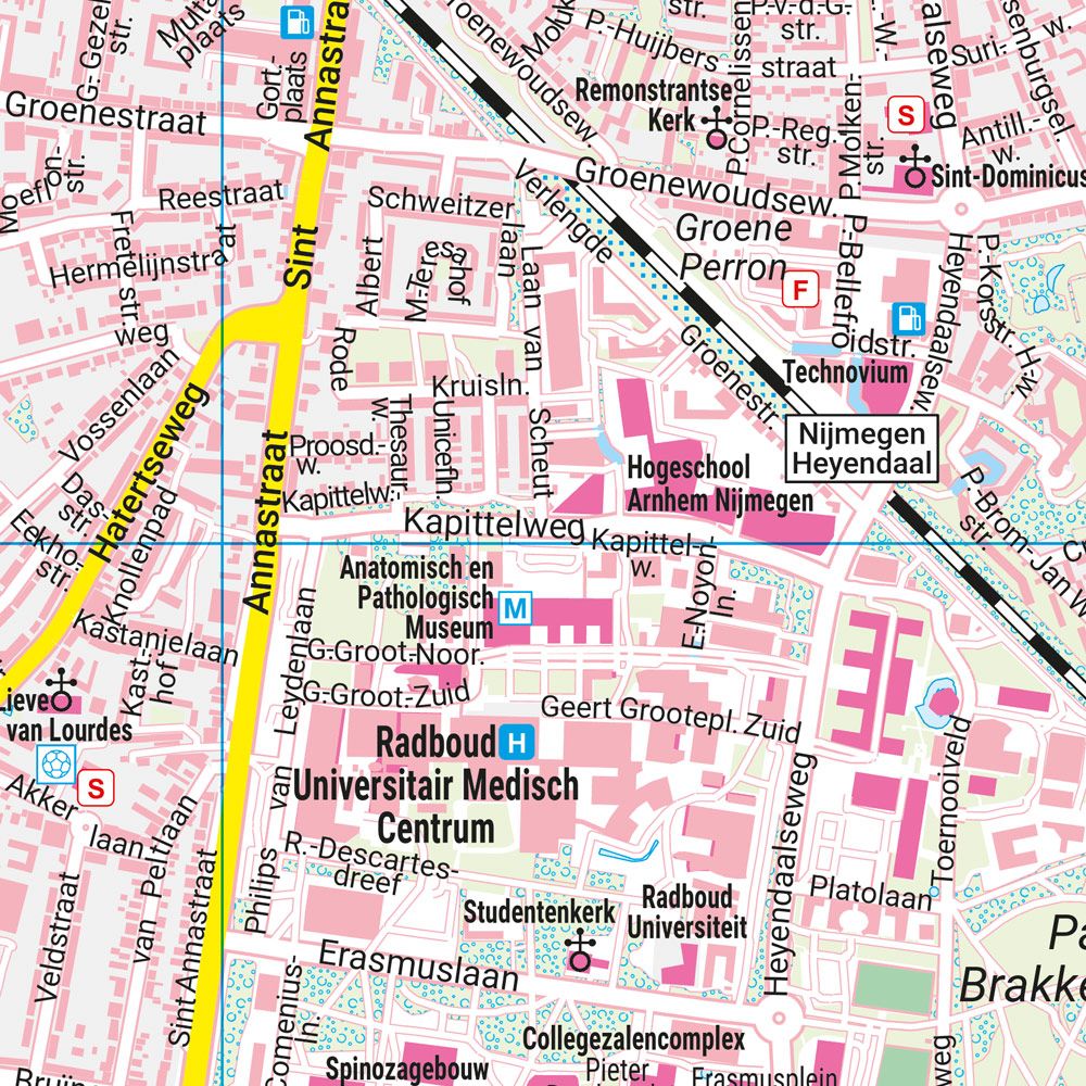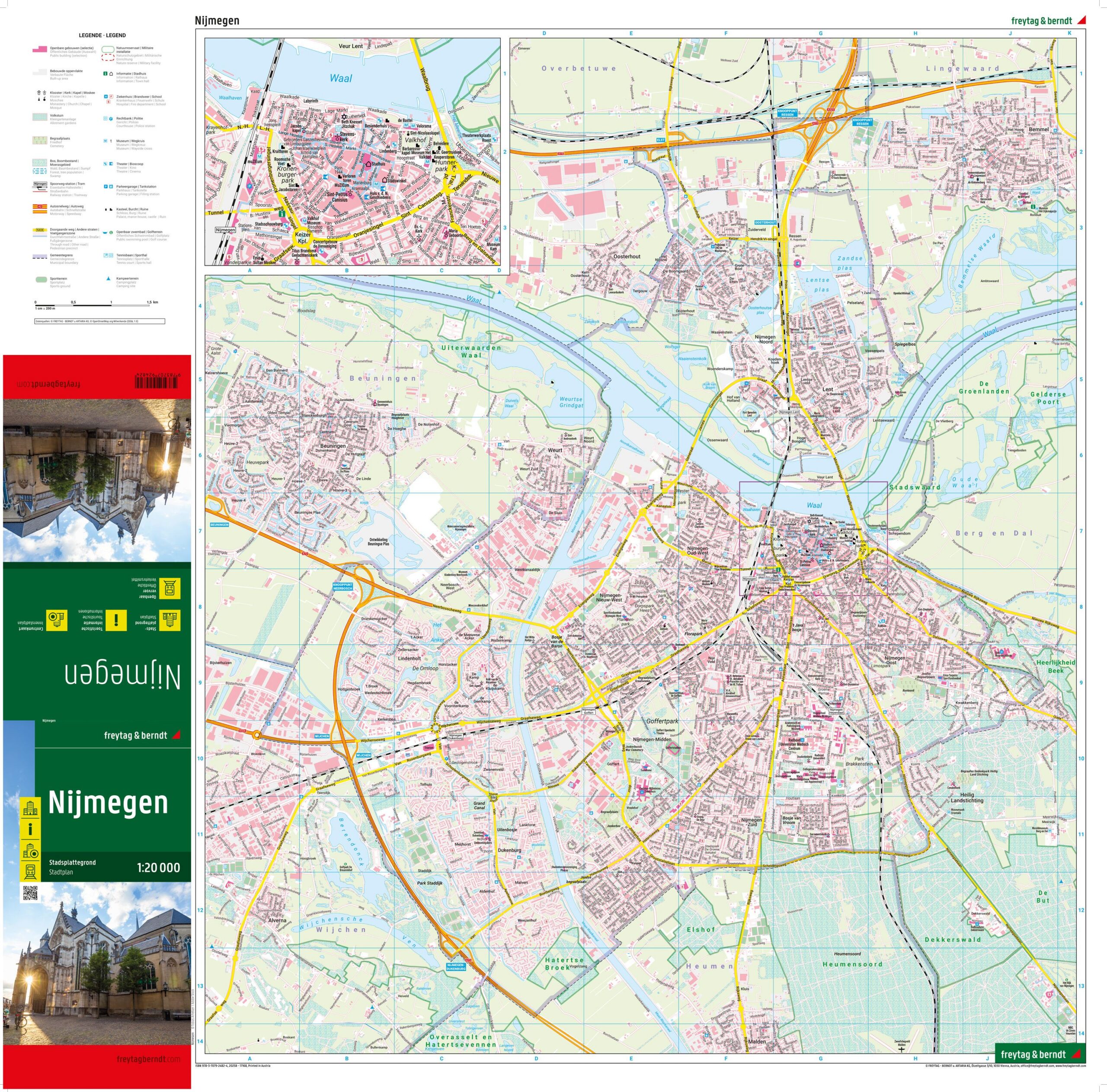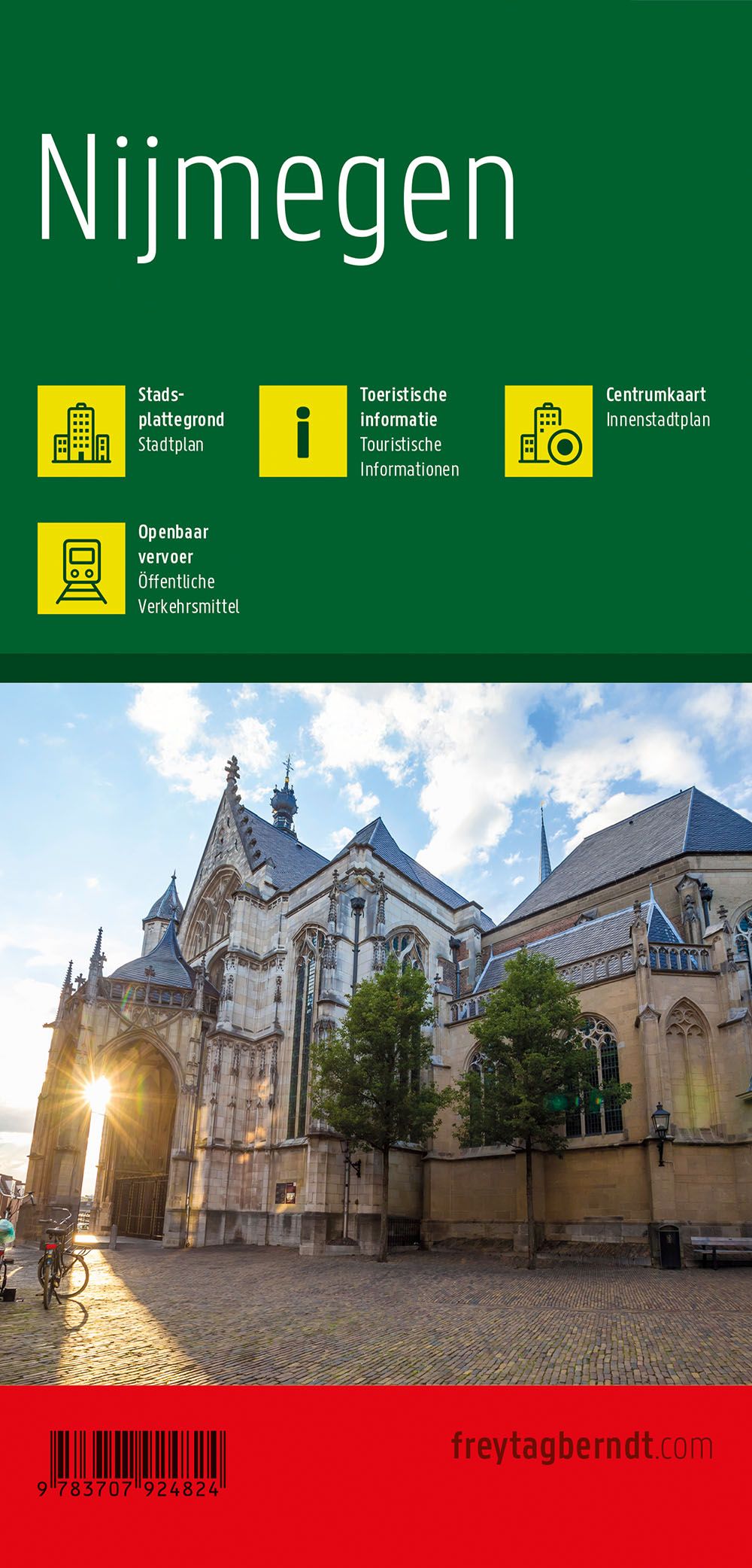 Dette bykartet dekker Nijmegen og gir en oversiktlig fremstilling av hele byen med tydelig struktur og lett lesbar kartografi. Kartet er godt egnet for byvandring, korte opphold og planlegging av transport og besøk i en av Nederlands eldste byer. Sentrum er fremstilt med ekstra detaljnivå, noe som gjør det enkelt å orientere seg til fots og finne fram til severdigheter, offentlige bygninger og kollektivtransport. Symbolbruk og kartutforming gir rask oversikt over viktige byfunksjoner, og på baksiden finnes et gate- og adresseregister som gjør det enkelt å slå opp konkrete adresser. Utgivelsesår: 2025.