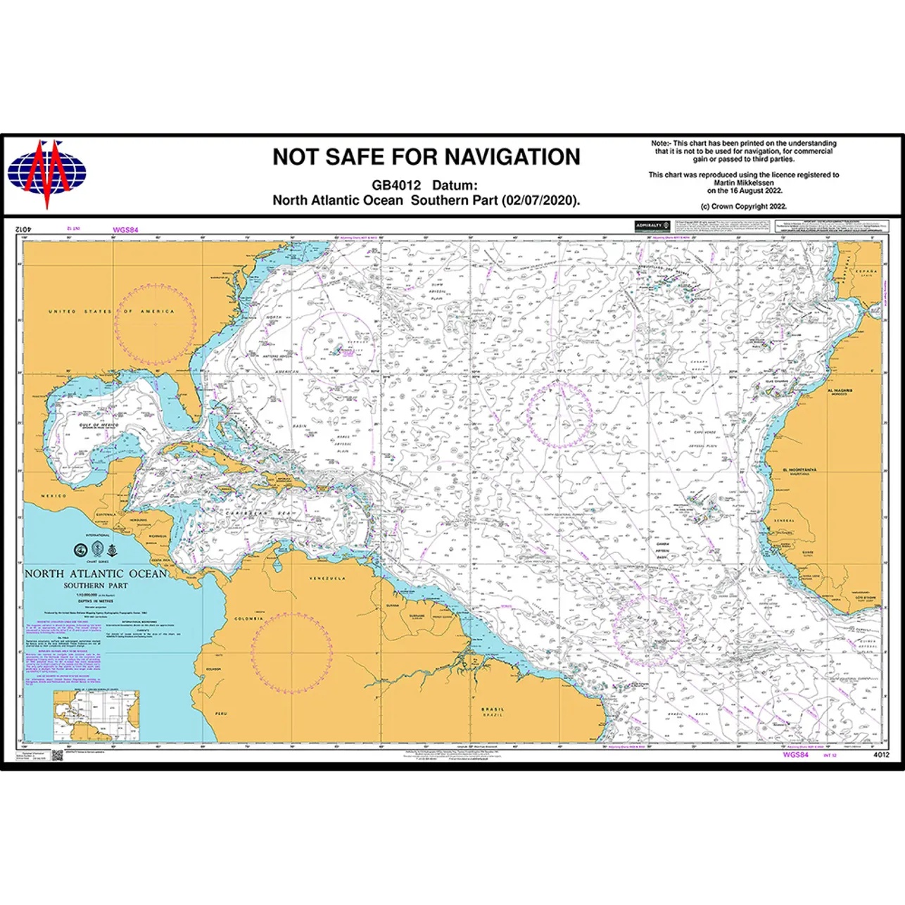 British Admiralty Chart 4012 er et offisielt oversiktskart utgitt av UK Hydrographic Office og dekker den sørlige delen av Nord-Atlanteren. Kartet er beregnet for langdistanse seilas og oseanisk navigasjon mellom Europa, Afrika, Karibia, Mellom- og Sør-Amerika.