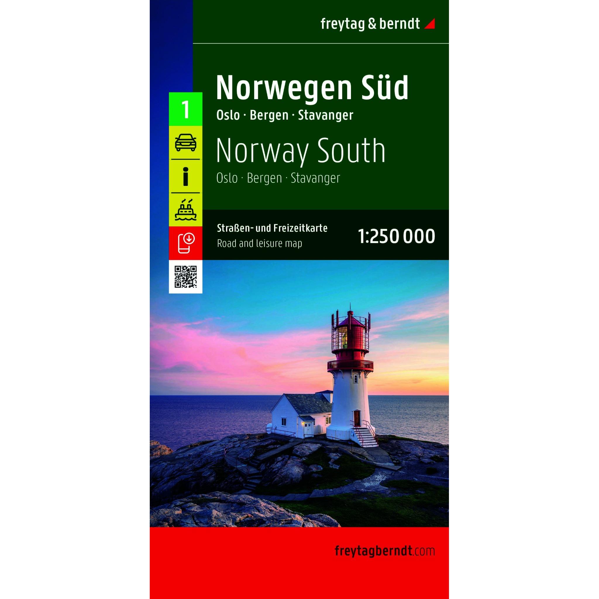 Kartet er utgitt i 2026 av freytag & berndt, i målestokk 1:250 000, og dekker Sør-Norge, inkludert Oslo, Oslofjorden, Vestlandet og områdene rundt Stavanger og Bergen. Kartet er trykket i Østerrike og leveres som et sammenleggbart veikart i stort format (ca. 124 × 95 cm utbrettet).