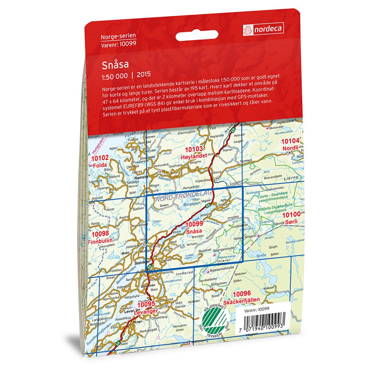 Dette kartet dekker området Snåsa og er en del av Norge-serien – de ikoniske røde turkartene som i flere generasjoner har vært brukt av turfolk over hele landet. Norge-serien er den eneste turkartserien som dekker hele Norge, fra Lindesnes til Nordkapp.