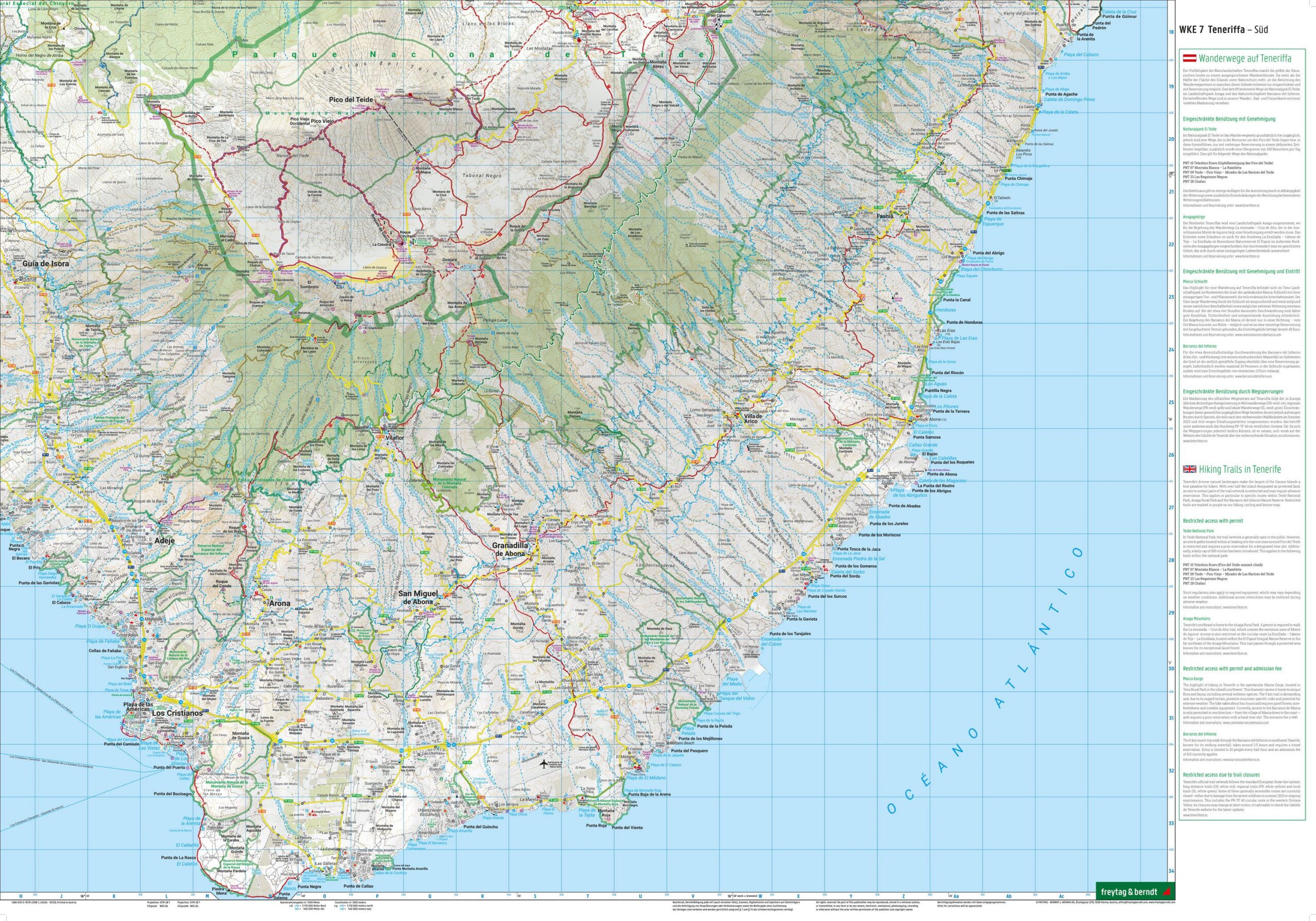 Dette turkartet dekker Tenerife og gir en detaljert oversikt over øyas varierte landskap og omfattende nettverk av turstier. Kartet leveres som et sett med to kartblad, som samlet gir full dekning av øya og god detaljgrad for både planlegging og gjennomføring av turer.