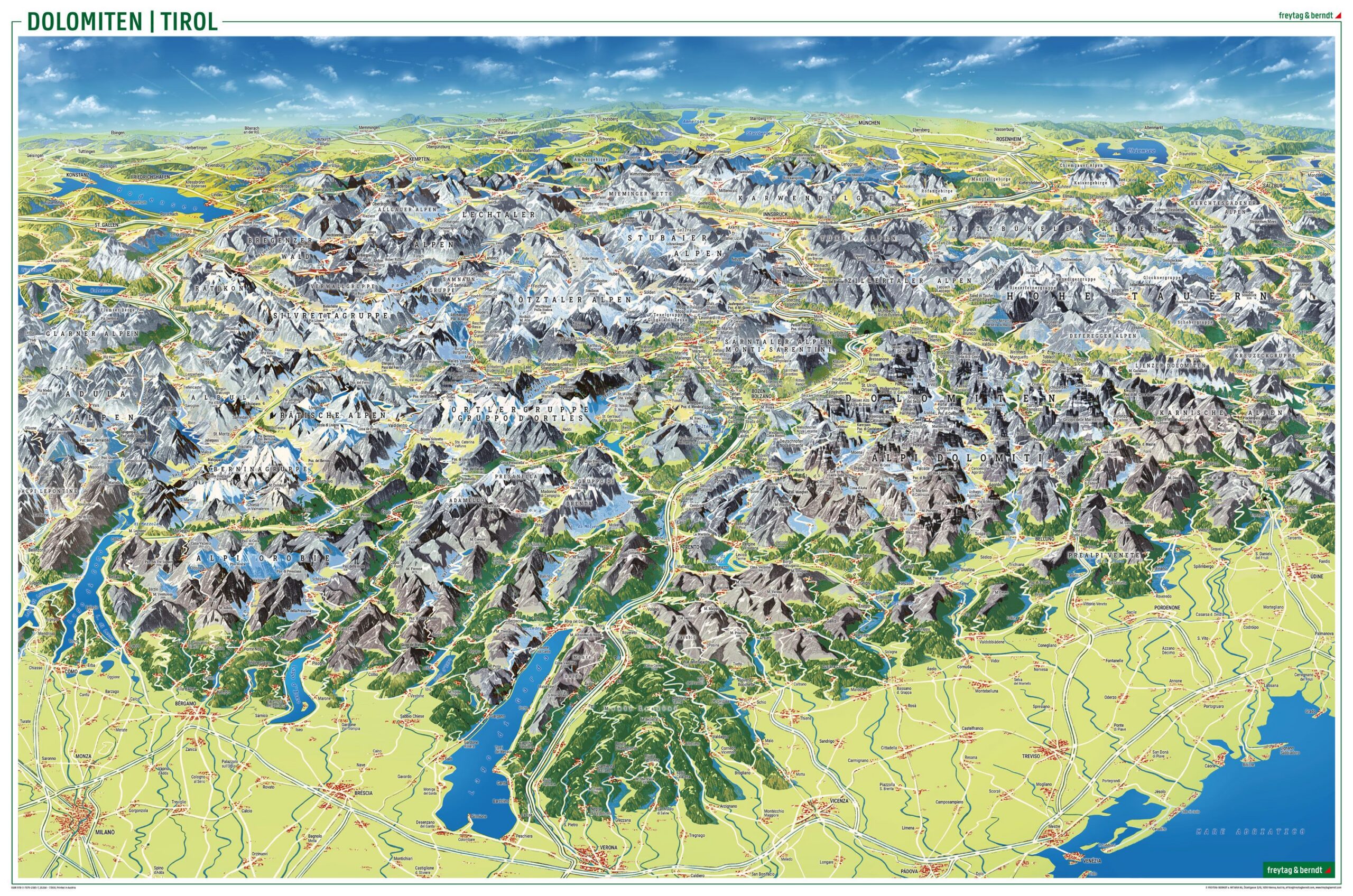 På baksiden finnes en egen, tegnet panoramakart-illustrasjon som gir et helhetlig og lettfattelig overblikk over fjellområdene i Tirol og Dolomittene, samt regionen rundt Gardasjøen. Dette gir et unikt supplement til det tradisjonelle veikartet og gjør kartet særlig egnet til planlegging av ruter i alpint terreng.