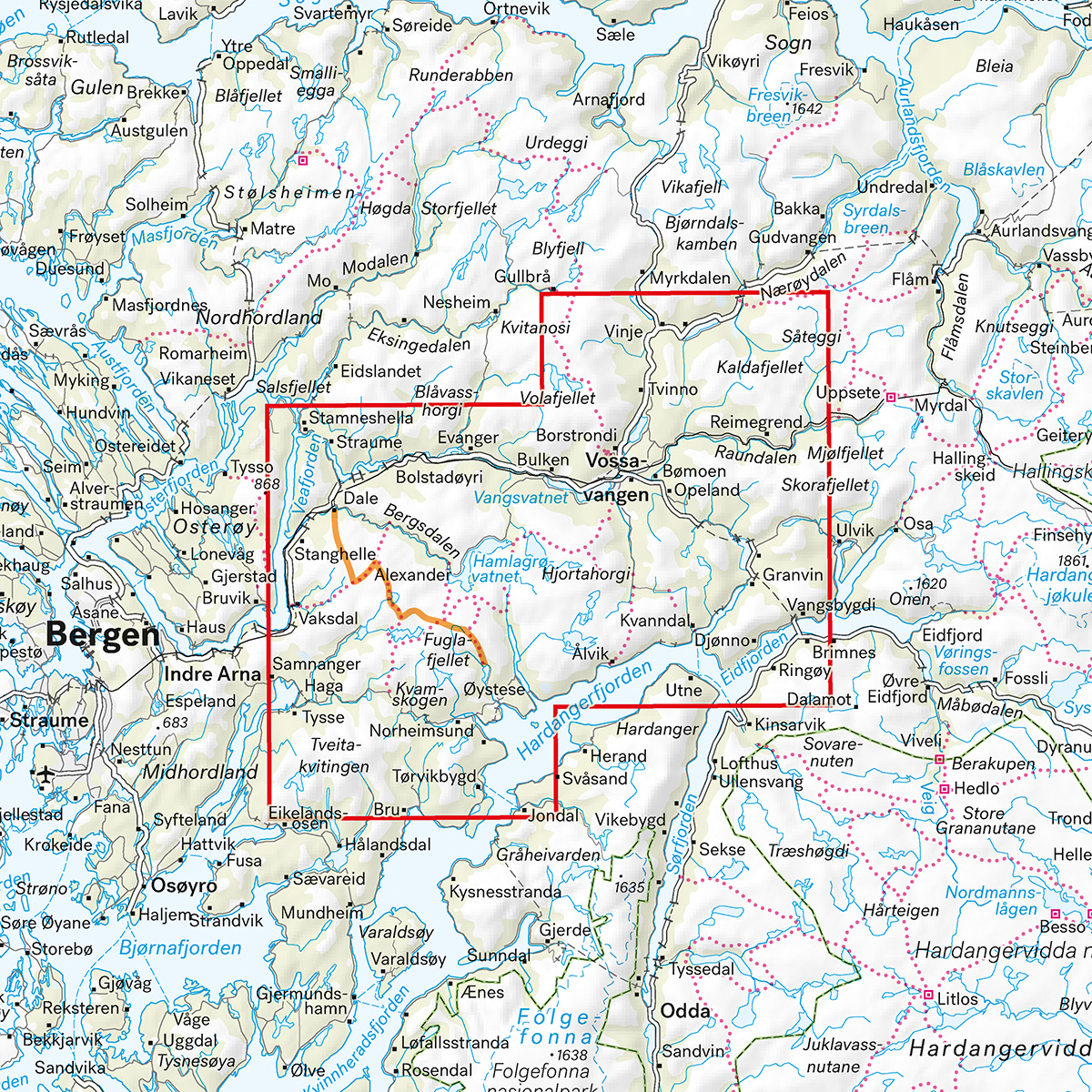 Turkart Bergsdalen & Voss 1:50 00010 på lager (kan restbestilles)