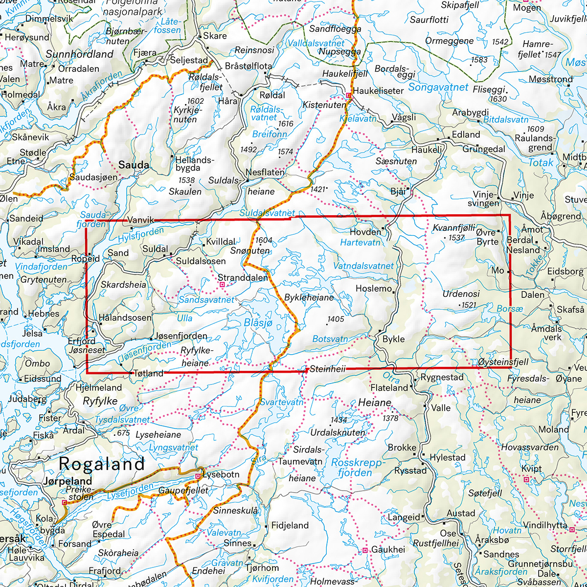 Turkart Suldalsheiane Bykleheiane & Hovden 1:50 00010 på lager (kan restbestilles)