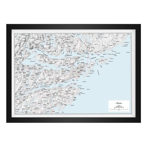 Kartet leveres uten ramme, men i et fast og rammevennlig plakatformat på 70 × 50 cm (liggende), noe som gjør det enkelt å ramme inn etter eget ønske. Den detaljerte målestokken gjør kartet godt egnet både som praktisk referanse for lokalkunnskap og kystnær ferdsel, og som et dekorativt veggkart i hjemmet, på hytta eller i sjøboden.
