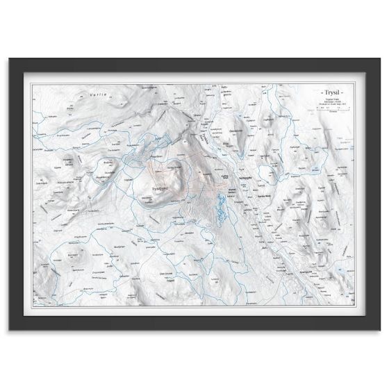 Veggkart Trysil er et eksklusivt og rammevennlig fjellkart i målestokk 1:90 000 som gir en oversiktlig og detaljert fremstilling av Trysil og omkringliggende skog- og fjellområder i Innlandet. Kartet viser fjell, skogsterreng, dalfører, vassdrag, stier, skiløyper, alpinanlegg og bebyggelse, og er fremstilt med tydelige terrengskygger som gir landskapet dybde og et rolig tredimensjonalt preg. Dette gjør kartet både lettlest og visuelt harmonisk.