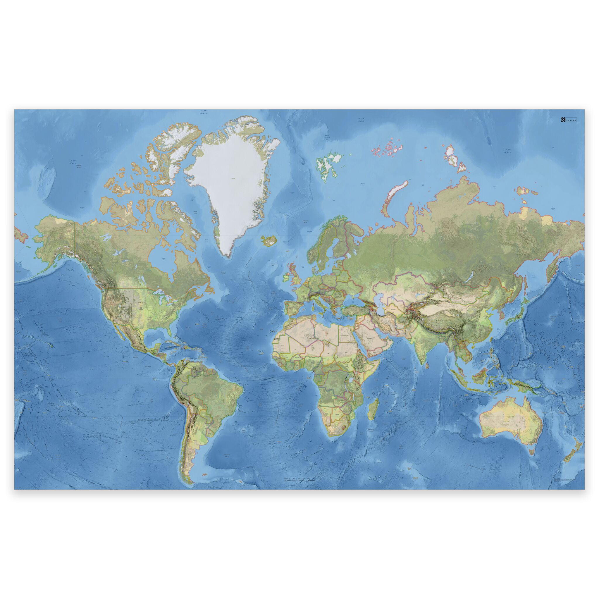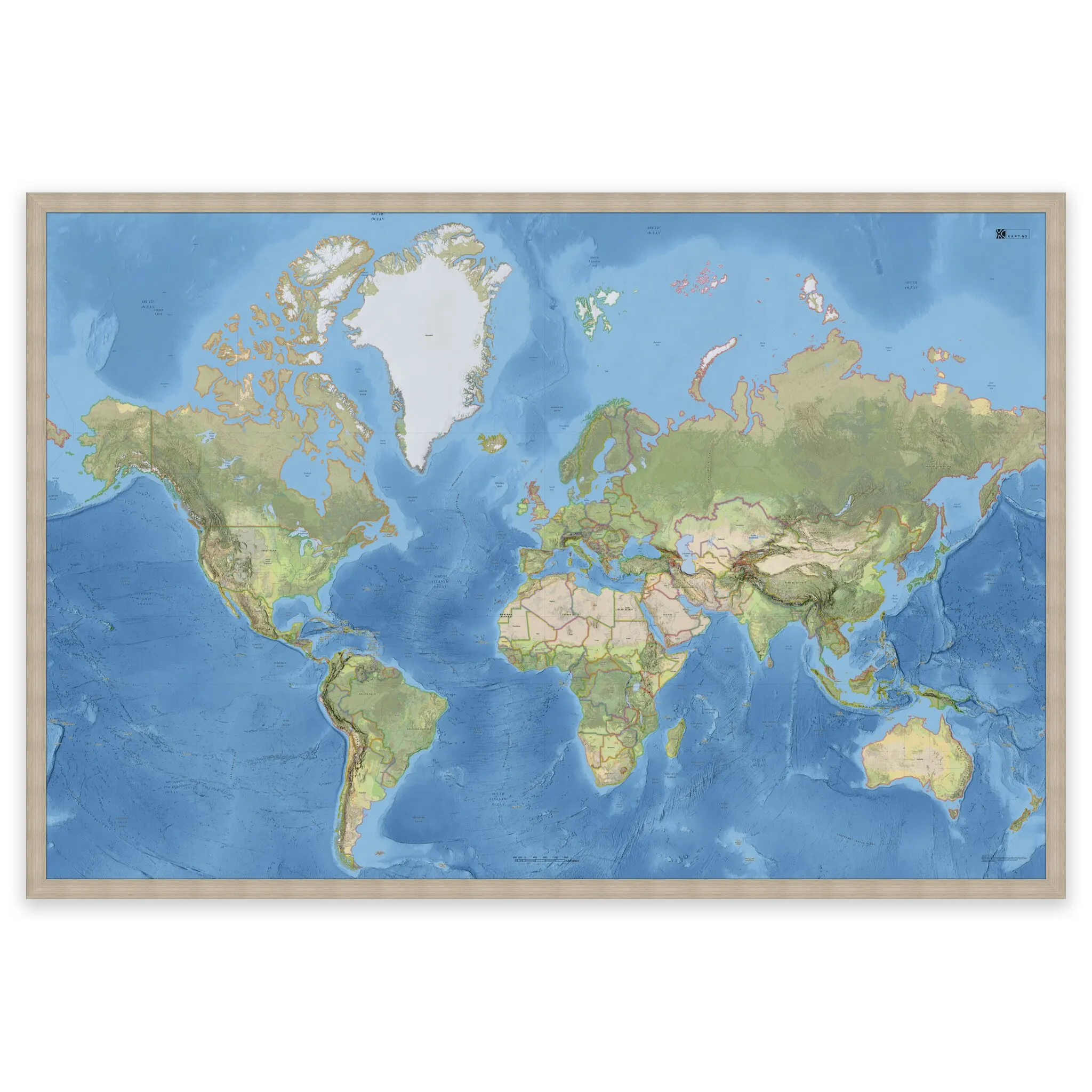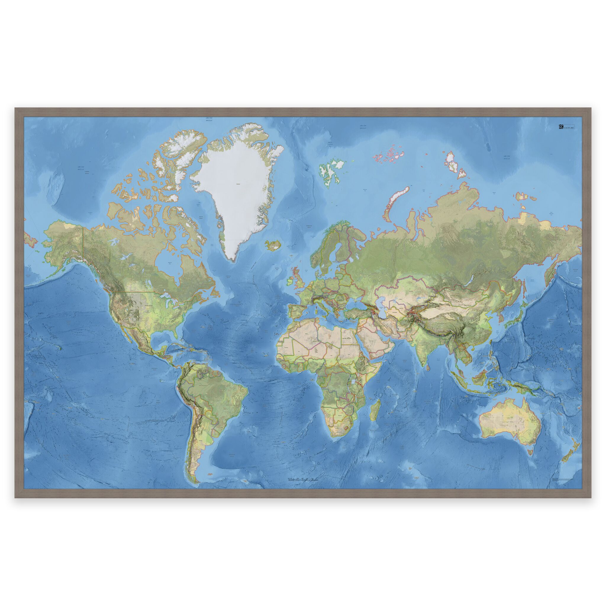 Stilrent og detaljert verdenskart – tilgjengelig i fire størrelser.