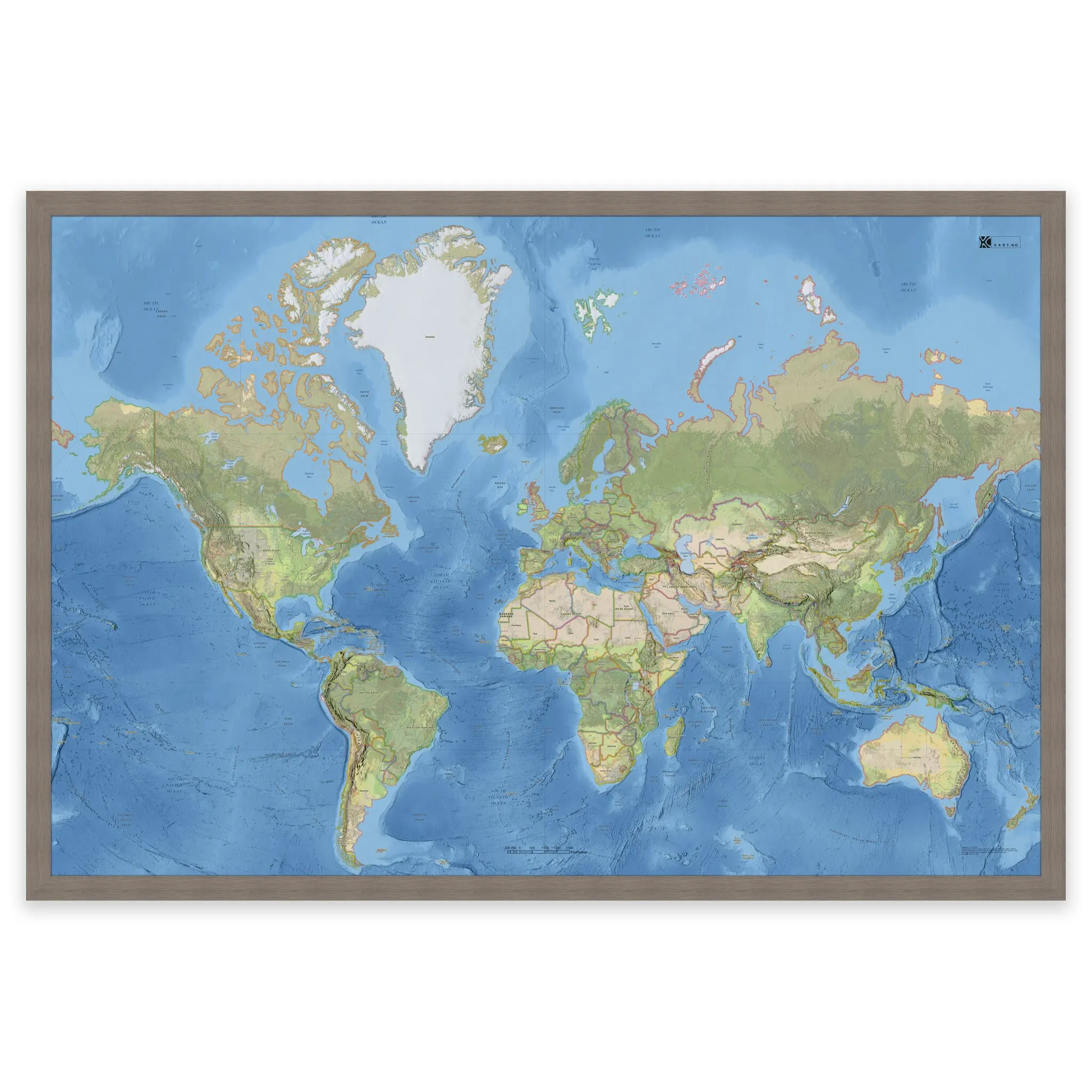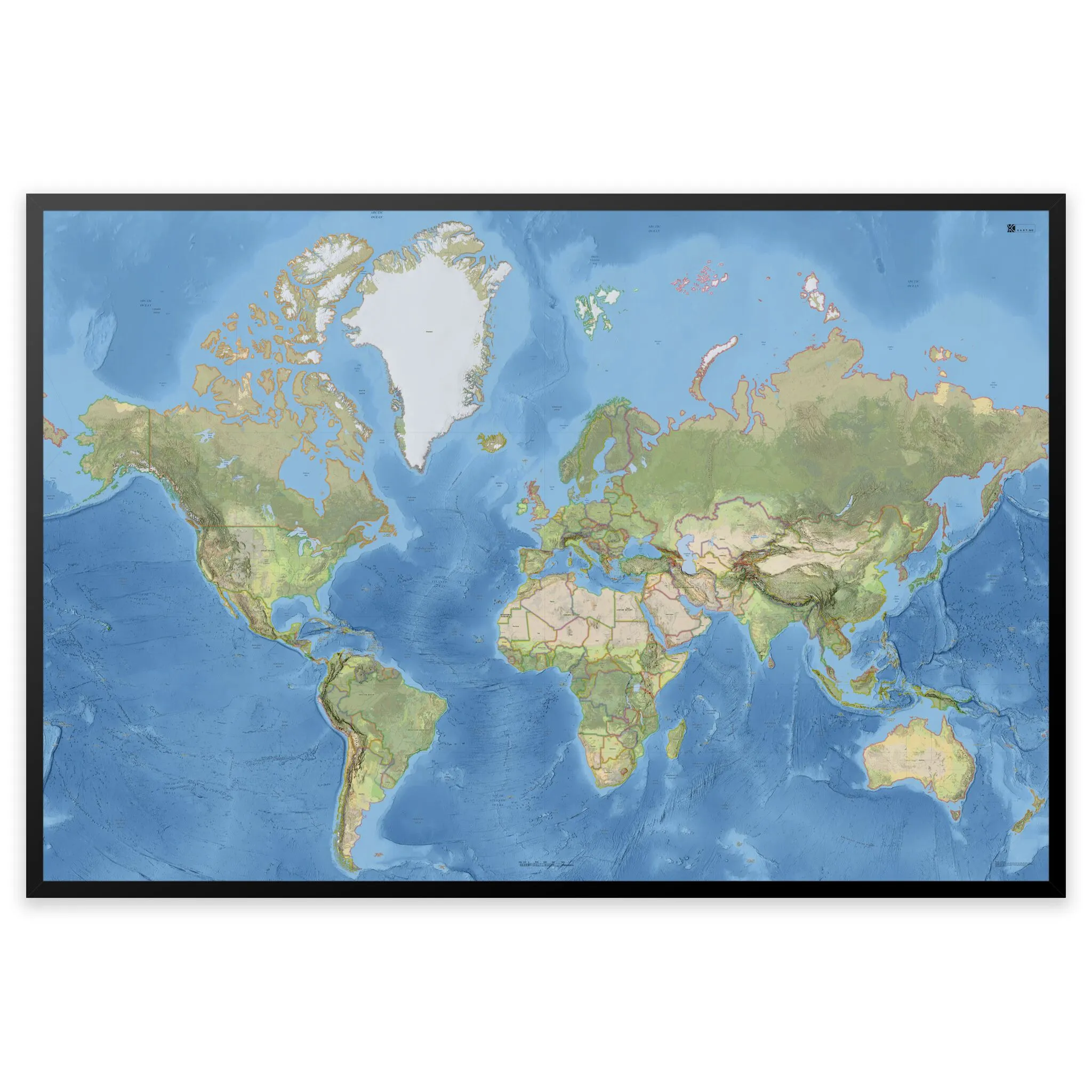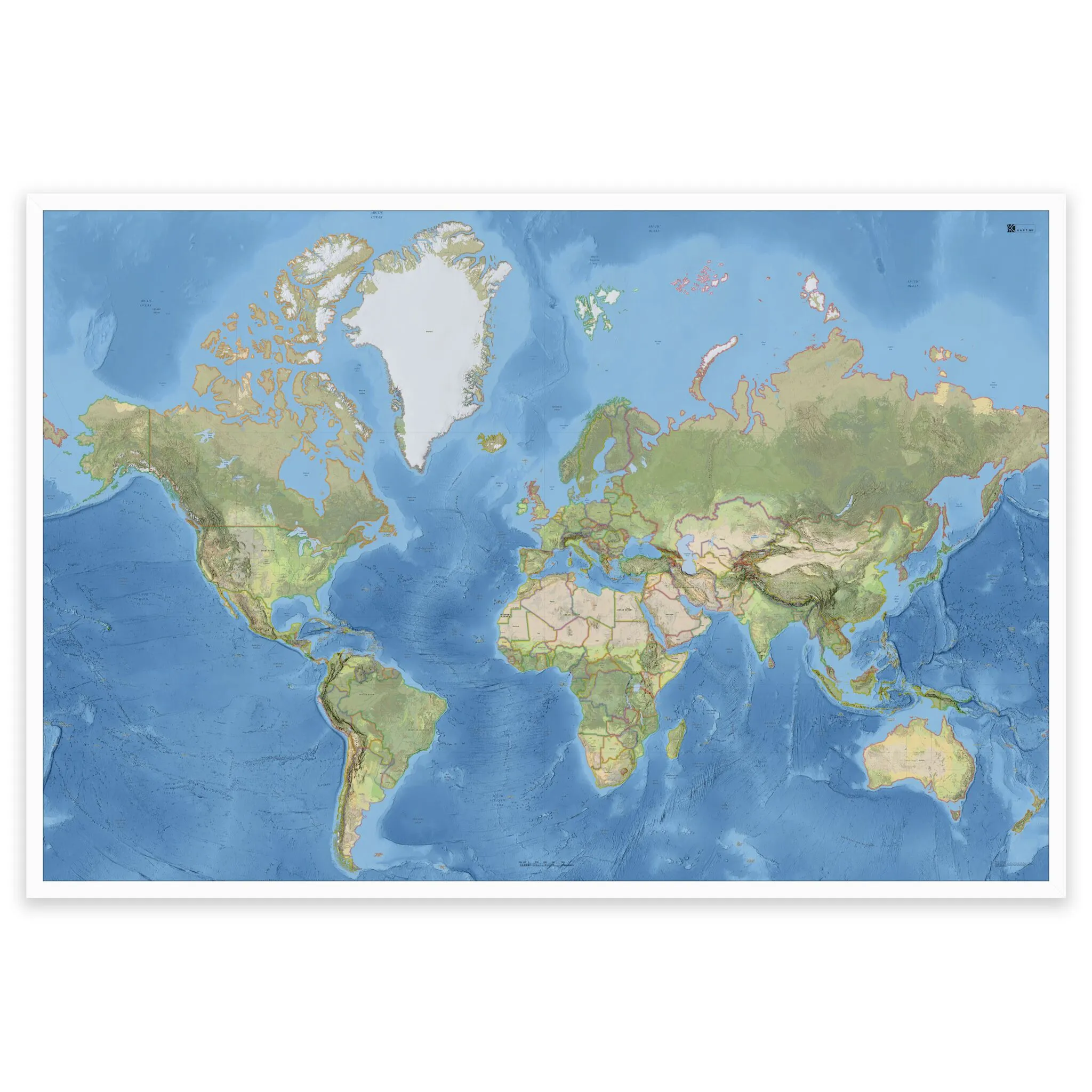 Stilrent og detaljert verdenskart – tilgjengelig i fire størrelser.