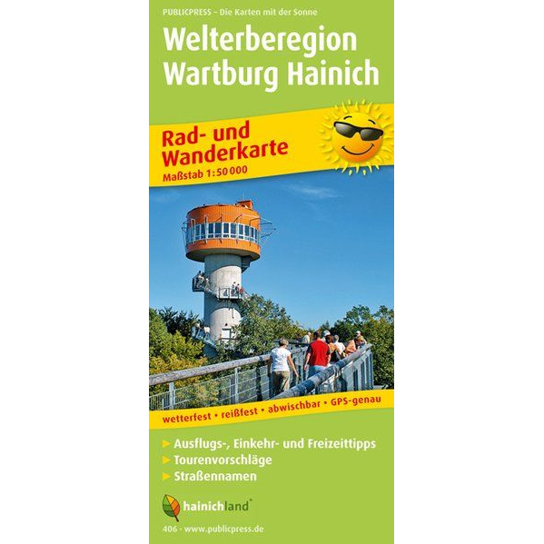 På kartets informasjonsside er utvalgte utfluktsmål og høydepunkter samlet, blant annet den kjente tretoppstien i Hainich, som gir spektakulær utsikt fra over tretoppene. Kartet er trykket på slitesterkt materiale som er både vann- og rivefast, og kan tørkes av etter bruk. Det er derfor godt egnet for aktiv bruk i all slags vær.